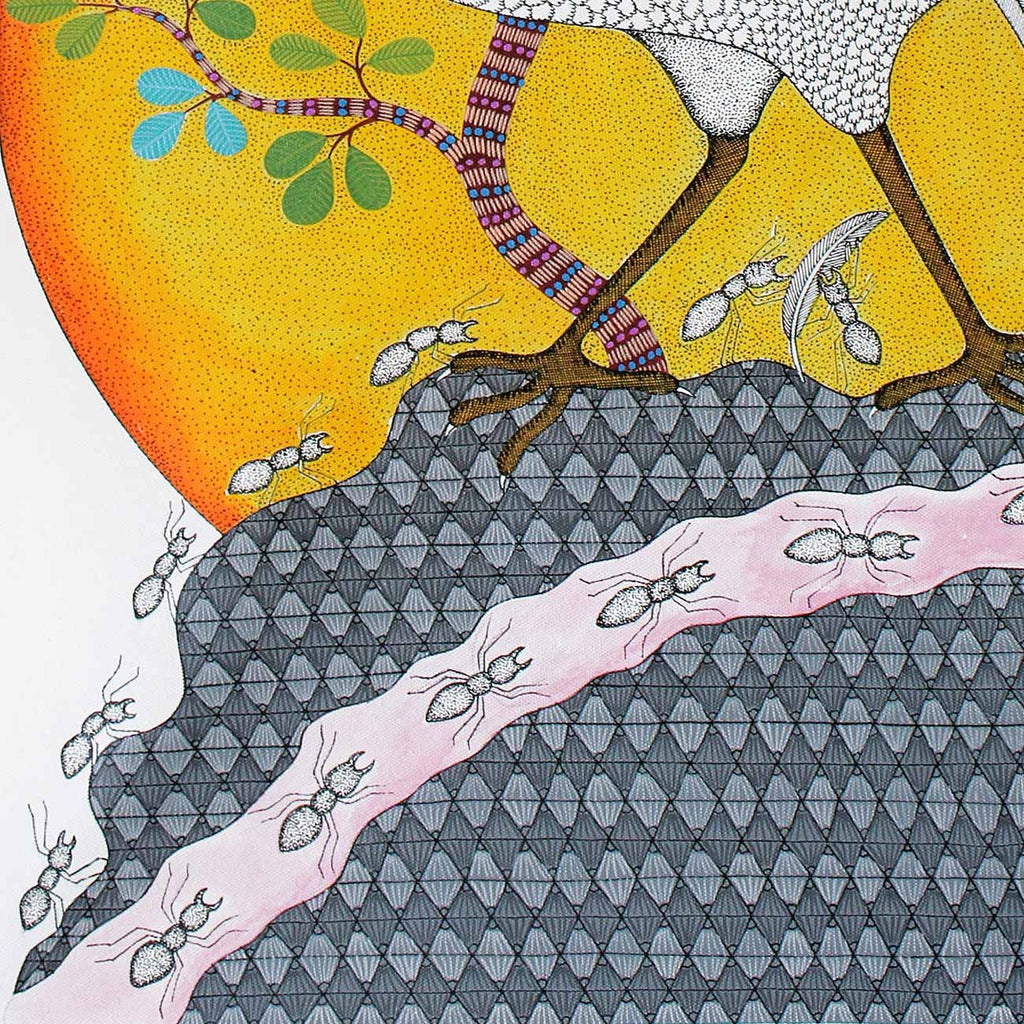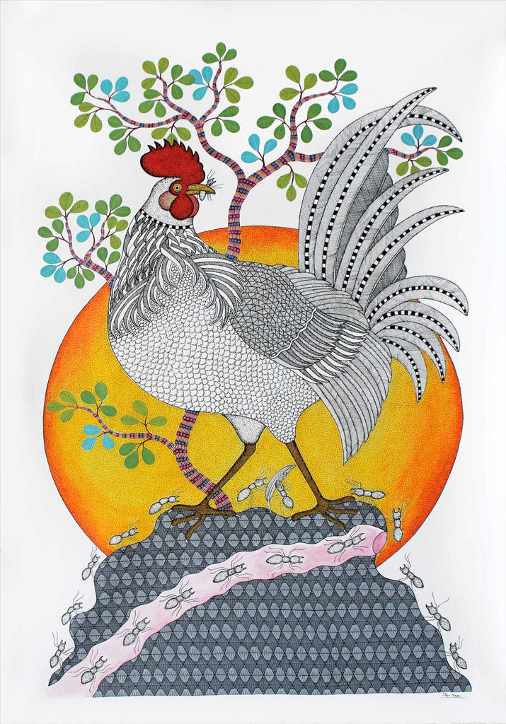Jangarh Singh Shyam was India’s most noted Gond artist, who passed away in 2001. Several members of his family are renowned Gond artists, including his wife, Nankusia Shyam, children Mayank Shyam and Japani Shyam, brother in law Subhash Vyam and his wife, Durga Bai.