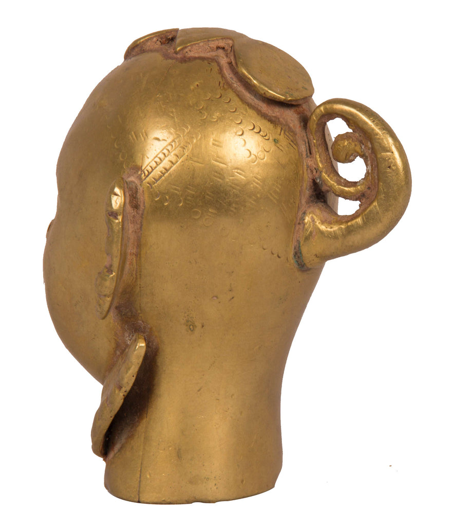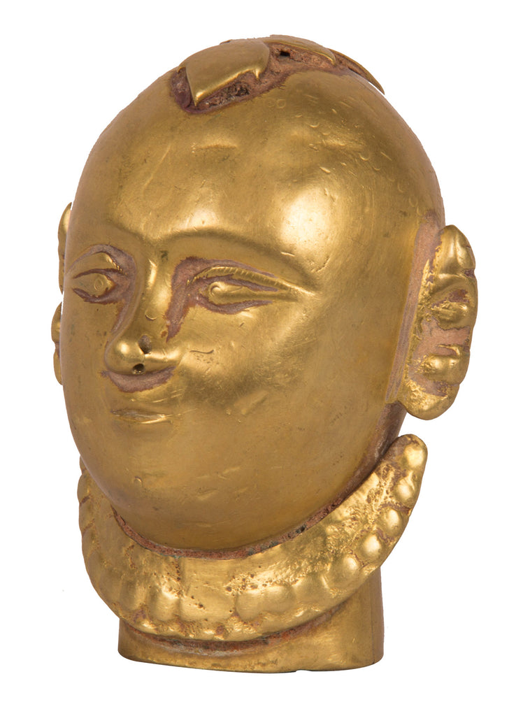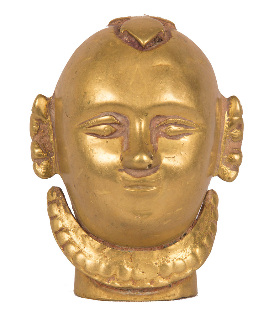 Read MoreGowri or Gauri, also known as Shakti, is a form of Parvati, the Hindu goddess of fertility, love and devotion, as well as of divine strength and power. A central deity in the Trinity of Goddesses in Hinduism (Tridevi), she is known by many names and is worshipped as the Mother Goddess. This head of Gowri is excellently cast in brass and would have been used by followers of the Shaivite sect of Hinduism. An old collectible from Maharashtra, the piece is in good condition.