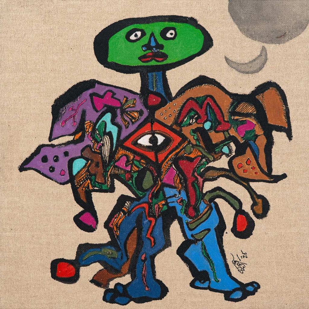 This artwork is part of the Sixty@60 series of artworks by Laxman Aelay. The series, marking the year in which Laxman Aelay turned 60, comprises of sixty lyrical, dreamlike fragments rendered in ink, pigment and textured lines, that inevitably translate absence into substance, and nothing into everything, in a metaphysical sense. Each work is a pause, a small pocket of time where memory, dream, and myth converge in unexpected ways. There are poetic feelings such as a sudden flash of a bird, a face that flickers between joy and solitude, a landscape dissolving into abstraction. Working on such an intimate scale changes the artist’s rhythm. It invites closeness, making every mark intimate, deliberate, and personal. Some panels hold a single figure or animal, while others weave intricate worlds of foliage, water, and sky. They are fragments of stories that were never fully told, images that hover like verses of a poem, waiting to be seen, heard, and felt.