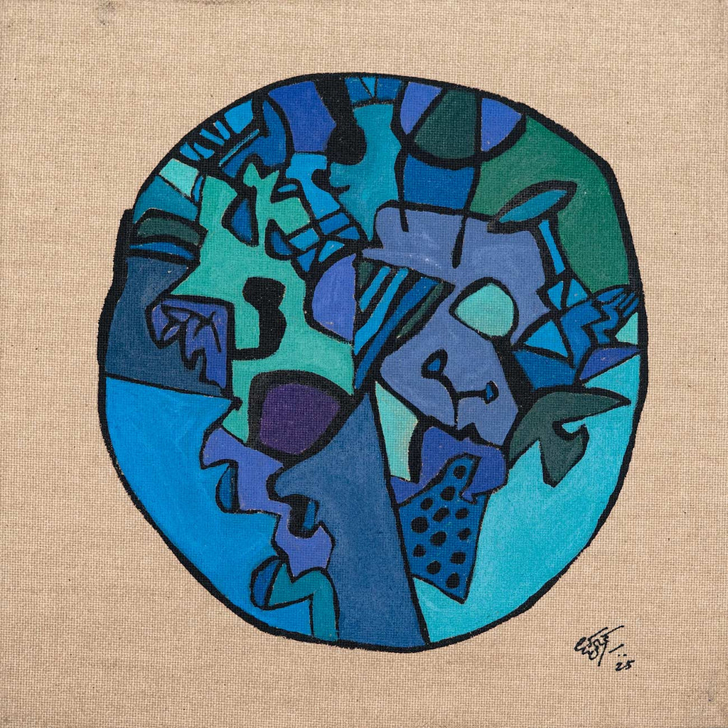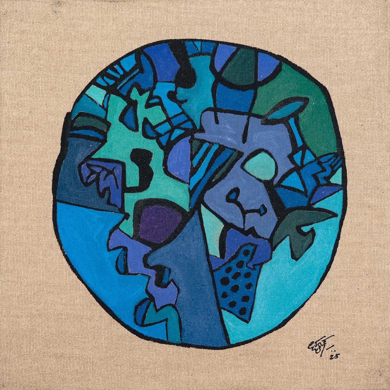 This artwork is part of the Sixty@60 series of artworks by Laxman Aelay. The series, marking the year in which Laxman Aelay turned 60, comprises of sixty lyrical, dreamlike fragments rendered in ink, pigment and textured lines, that inevitably translate absence into substance, and nothing into everything, in a metaphysical sense. Each work is a pause, a small pocket of time where memory, dream, and myth converge in unexpected ways. There are poetic feelings such as a sudden flash of a bird, a face that flickers between joy and solitude, a landscape dissolving into abstraction. Working on such an intimate scale changes the artist’s rhythm. It invites closeness, making every mark intimate, deliberate, and personal. Some panels hold a single figure or animal, while others weave intricate worlds of foliage, water, and sky. They are fragments of stories that were never fully told, images that hover like verses of a poem, waiting to be seen, heard, and felt.