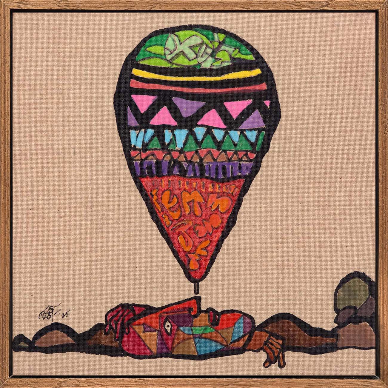 This artwork is part of the Sixty@60 series of artworks by Laxman Aelay. The series, marking the year in which Laxman Aelay turned 60, comprises of sixty lyrical, dreamlike fragments rendered in ink, pigment and textured lines, that inevitably translate absence into substance, and nothing into everything, in a metaphysical sense. Each work is a pause, a small pocket of time where memory, dream, and myth converge in unexpected ways. There are poetic feelings such as a sudden flash of a bird, a face that flickers between joy and solitude, a landscape dissolving into abstraction. Working on such an intimate scale changes the artist’s rhythm. It invites closeness, making every mark intimate, deliberate, and personal. Some panels hold a single figure or animal, while others weave intricate worlds of foliage, water, and sky. They are fragments of stories that were never fully told, images that hover like verses of a poem, waiting to be seen, heard, and felt.