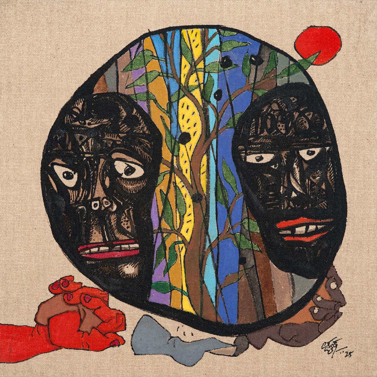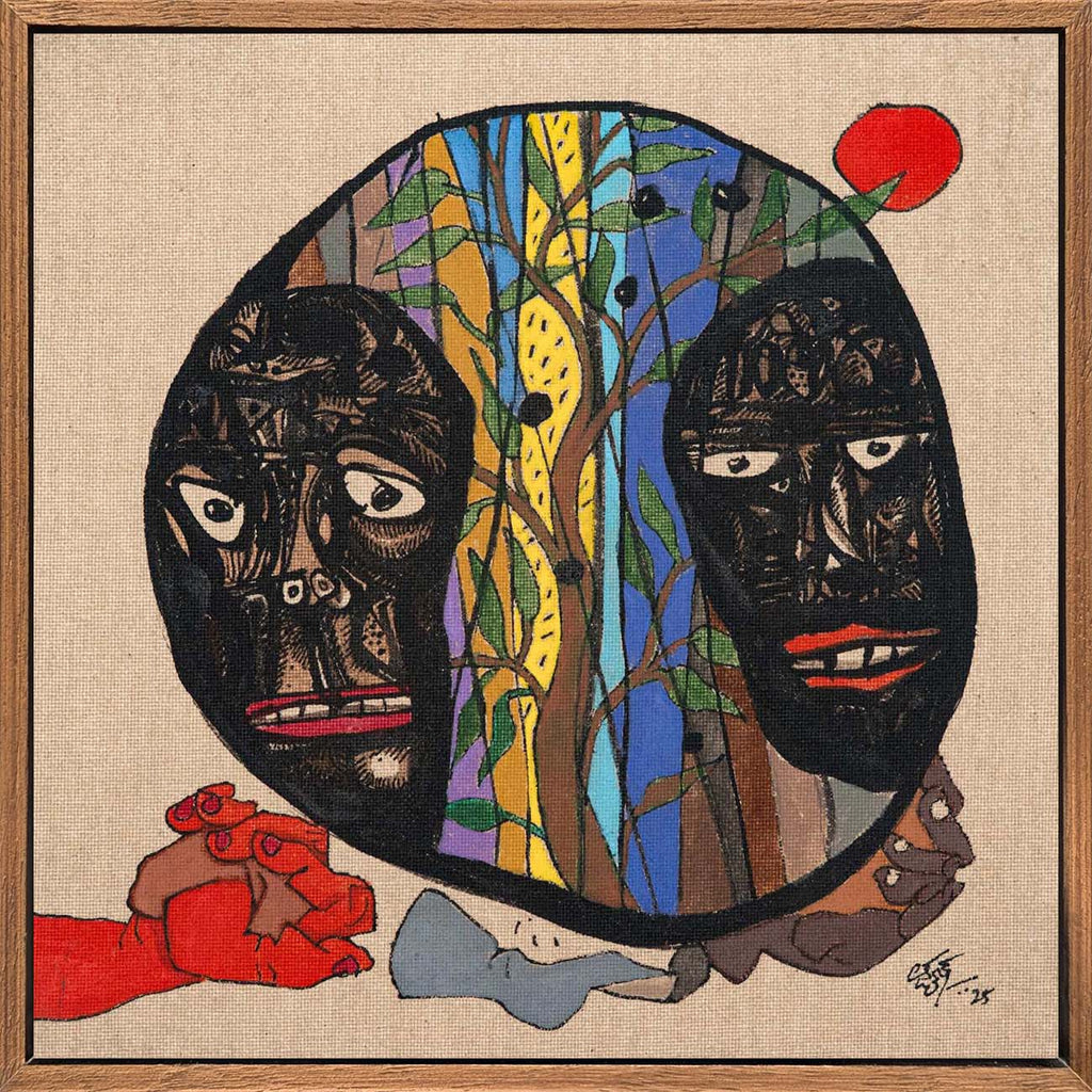 This artwork is part of the Sixty@60 series of artworks by Laxman Aelay. The series, marking the year in which Laxman Aelay turned 60, comprises of sixty lyrical, dreamlike fragments rendered in ink, pigment and textured lines, that inevitably translate absence into substance, and nothing into everything, in a metaphysical sense. Each work is a pause, a small pocket of time where memory, dream, and myth converge in unexpected ways. There are poetic feelings such as a sudden flash of a bird, a face that flickers between joy and solitude, a landscape dissolving into abstraction. Working on such an intimate scale changes the artist’s rhythm. It invites closeness, making every mark intimate, deliberate, and personal. Some panels hold a single figure or animal, while others weave intricate worlds of foliage, water, and sky. They are fragments of stories that were never fully told, images that hover like verses of a poem, waiting to be seen, heard, and felt.