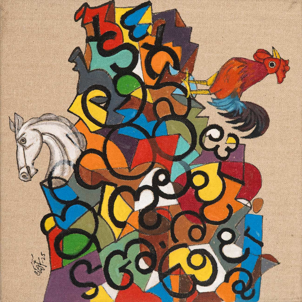 This artwork is part of the Sixty@60 series of artworks by Laxman Aelay. The series, marking the year in which Laxman Aelay turned 60, comprises of sixty lyrical, dreamlike fragments rendered in ink, pigment and textured lines, that inevitably translate absence into substance, and nothing into everything, in a metaphysical sense. Each work is a pause, a small pocket of time where memory, dream, and myth converge in unexpected ways. There are poetic feelings such as a sudden flash of a bird, a face that flickers between joy and solitude, a landscape dissolving into abstraction. Working on such an intimate scale changes the artist’s rhythm. It invites closeness, making every mark intimate, deliberate, and personal. Some panels hold a single figure or animal, while others weave intricate worlds of foliage, water, and sky. They are fragments of stories that were never fully told, images that hover like verses of a poem, waiting to be seen, heard, and felt.