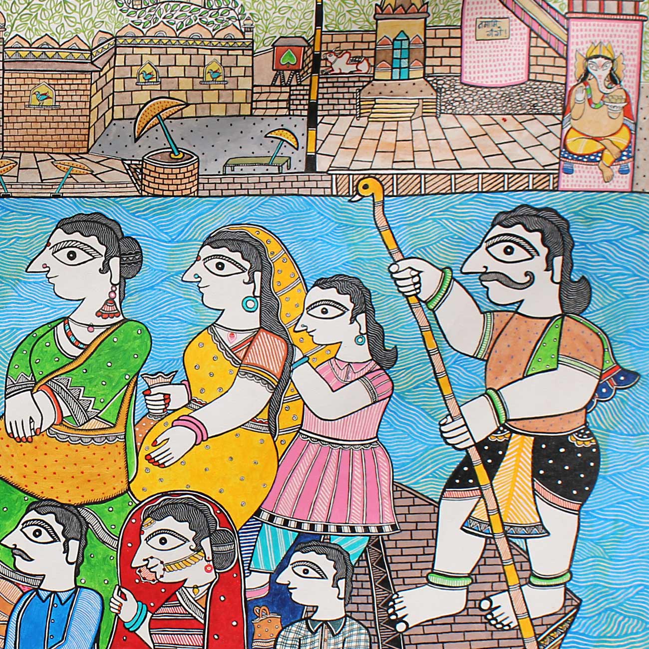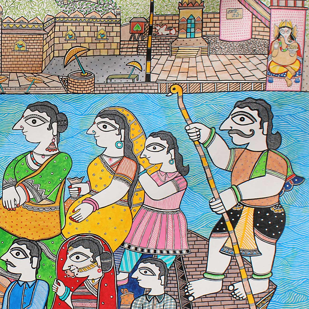 Known for its intricate motifs and vibrant colours, Madhubani or Mithila painting is an Indian art form developed by women from the region of Mithila in Northern Bihar. Though practiced for hundreds of years, Madhubani paintings were relatively unknown, and “discovered” only in 1934, when during an inspection after an earthquake, a British colonial officer came across them on the walls of houses.
