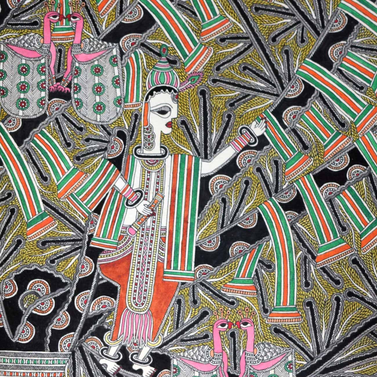 Known for its intricate motifs and vibrant colours, Madhubani or Mithila painting is an Indian art form developed by women from the region of Mithila in Northern Bihar. Though practiced for hundreds of years, Madhubani paintings were relatively unknown, and “discovered” only in 1934, when during an inspection after an earthquake, a British colonial officer came across them on the walls of houses.