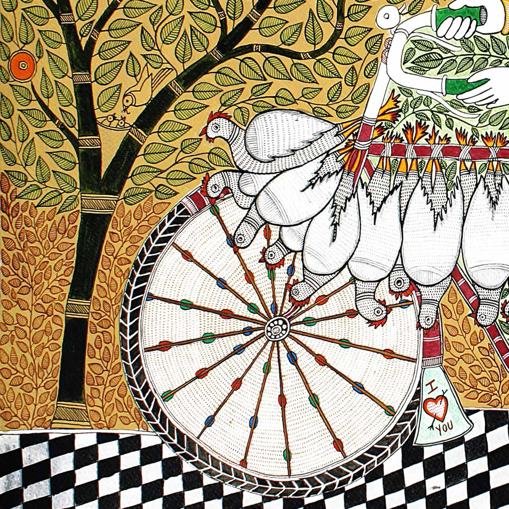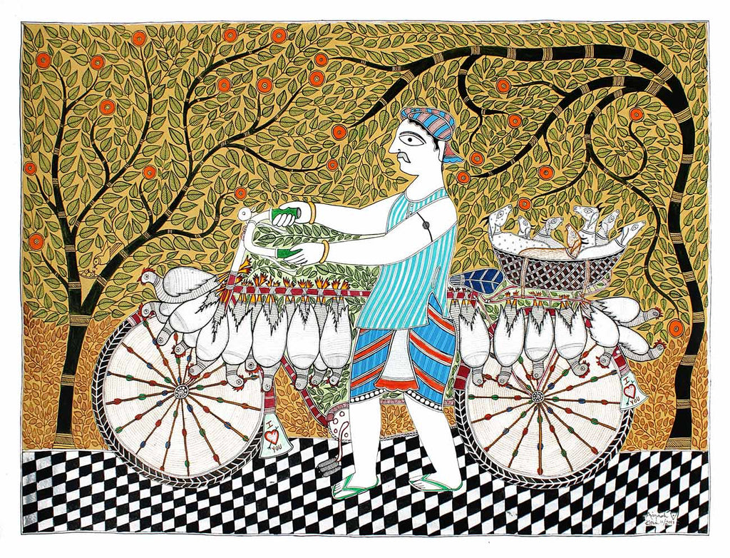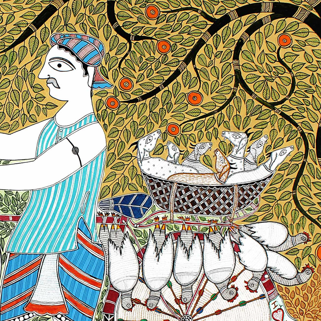 Known for its intricate motifs and vibrant colours, Madhubani or Mithila painting is an Indian art form developed by women from the region of Mithila in Northern Bihar. Though practiced for hundreds of years, Madhubani paintings were relatively unknown, and “discovered” only in 1934, when during an inspection after an earthquake, a British colonial officer came across them on the walls of houses.