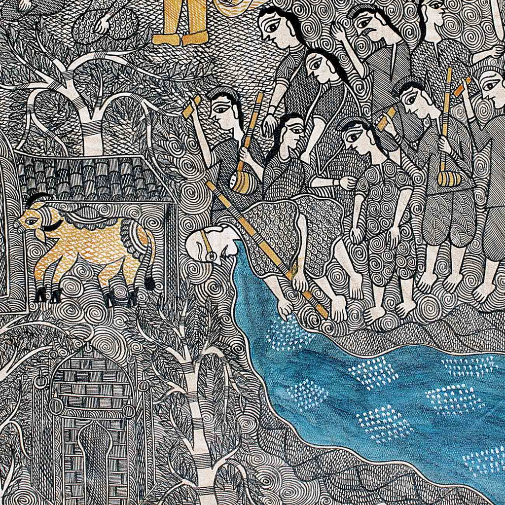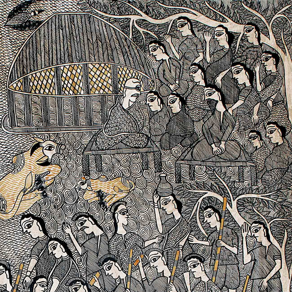 Known for its intricate motifs and vibrant colours, Madhubani or Mithila painting is an Indian art form developed by women from the region of Mithila in Northern Bihar. Though practiced for hundreds of years, Madhubani paintings were relatively unknown, and “discovered” only in 1934, when during an inspection after an earthquake, a British colonial officer came across them on the walls of houses.