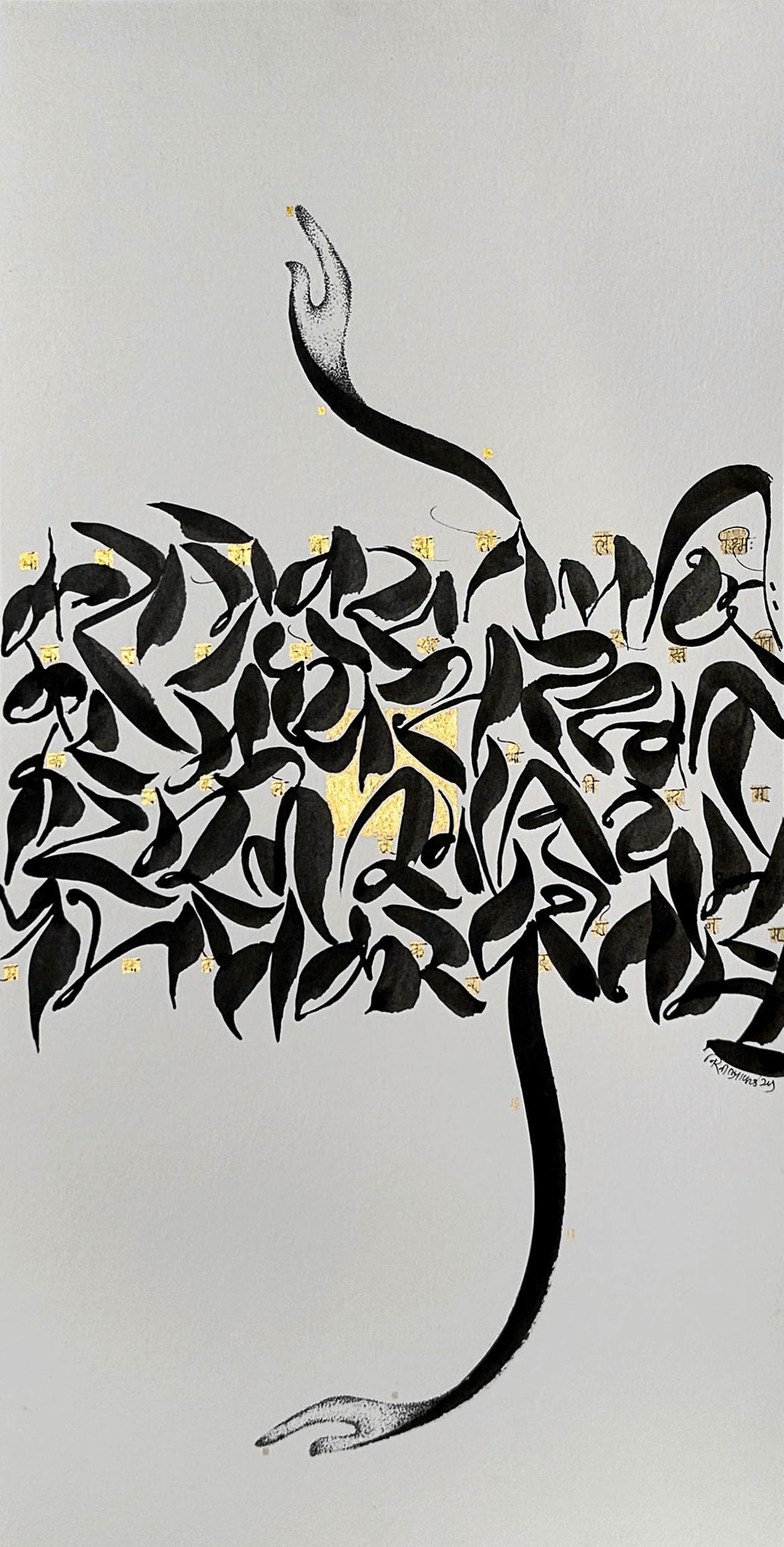 In addition to his roles as an artist, TEDx speaker, educator, and book cover designer, Nikheel has had the privilege of speaking at various calligraphy events in India. He has also participated in prestigious art events such as the Auroville Art Residency in India, the One Asia Project in Taipei, and the online exhibition “A Brush with Silence” in Bruges, Belgium. Furthermore, Nikheel’s work has been showcased in prominent art events in South Korea, including the World Calligraphy Biennale and the Asian Calligraphy Festival. He received the ‘Excellence in Calligraphy’ award at the Jikji International Calligraphy Exhibition in South Korea. In 2023, his work received recognition by being long listed for the Jackson Painting Prize. Nikheel’s interviews and work have been featured in various international platforms and prominent publications such as juried issues of Letter Arts Review in the USA, Typism books, Vogue, Juggernaut, Platform, Kyoorius, POOL and NDTV. Nikheel’s work is part of the permanent display in India’s new Parliament Building.