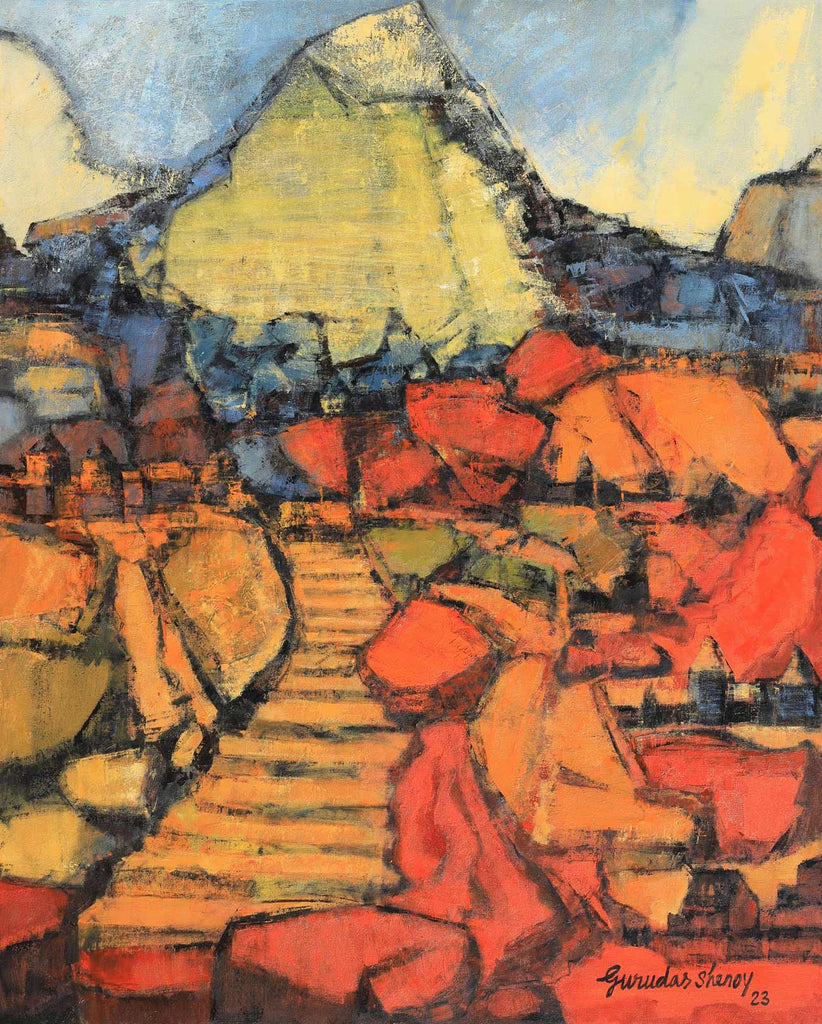 Born in 1965 in the small coastal town of Udupi in Karnataka, Gurudas Shenoy is an acclaimed artist with a career spanning over three decades. Having been born to senior artist G.S. Shenoy, he lived and breathed art since the day he was born, and developed a passion for the colours of nature at an early age. M.F. Husain, a close friend of his father's, was a mentor, and has hugely inspired Gurudas Shenoy's journey as an artist. He has held numerous solo exhibitions and participated in 200+ group shows at leading art galleries in India, including several at the Jehangir Art Gallery, Mumbai.