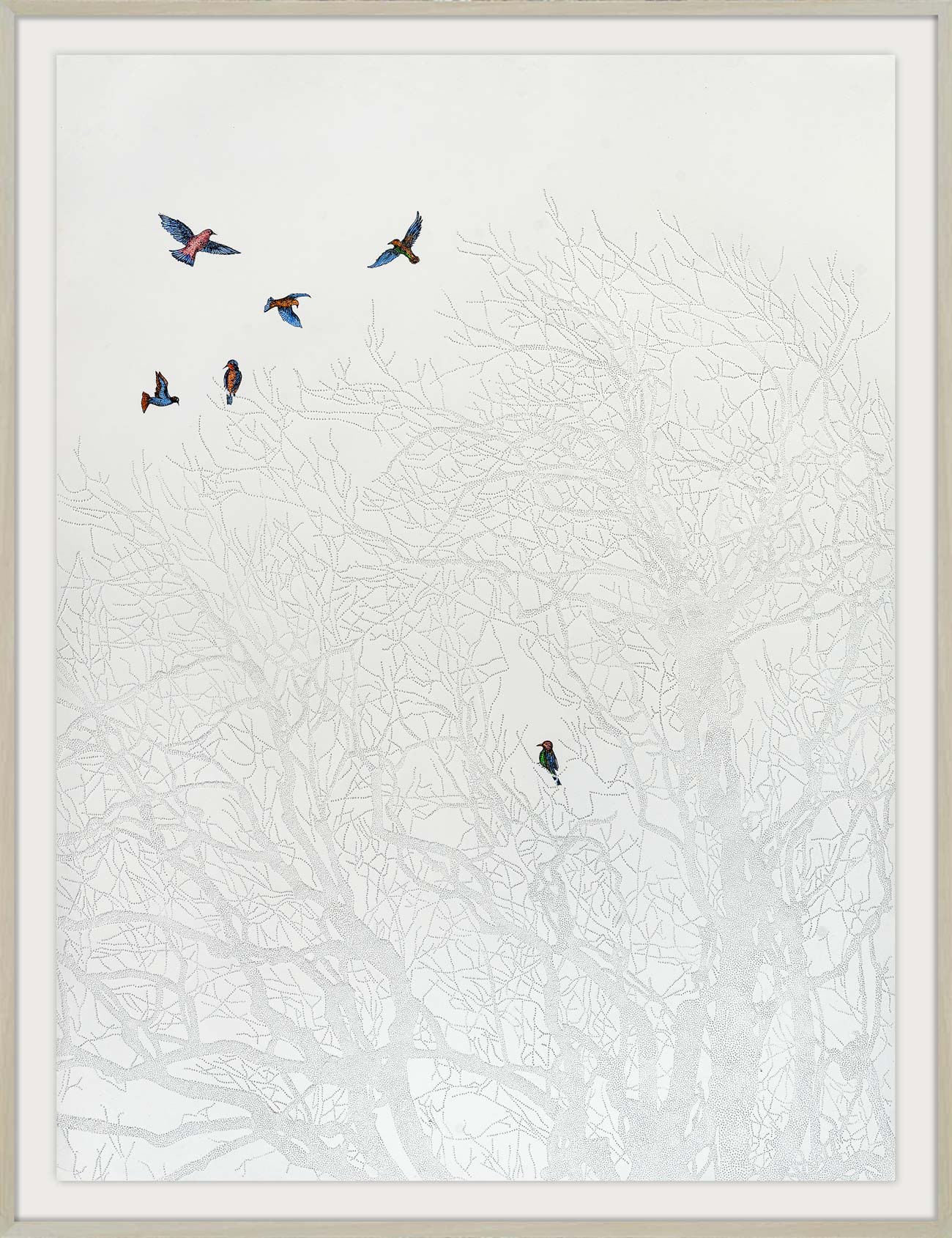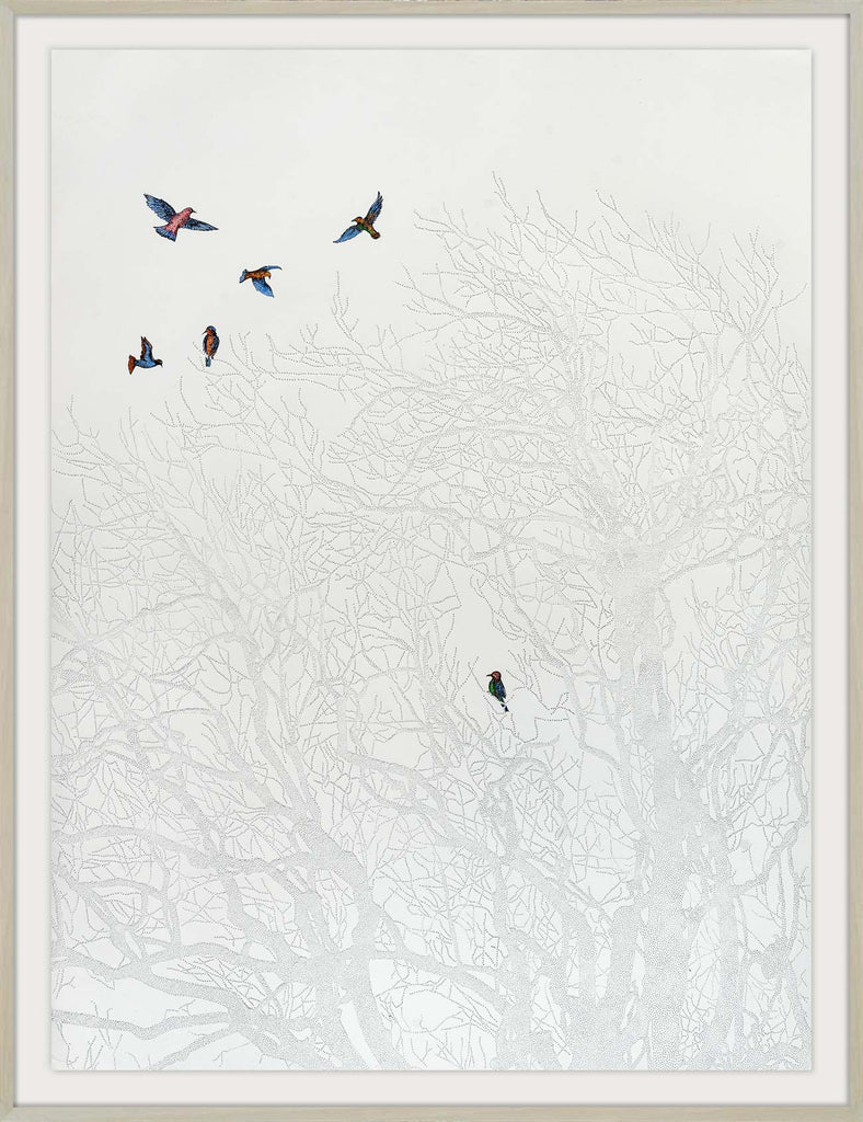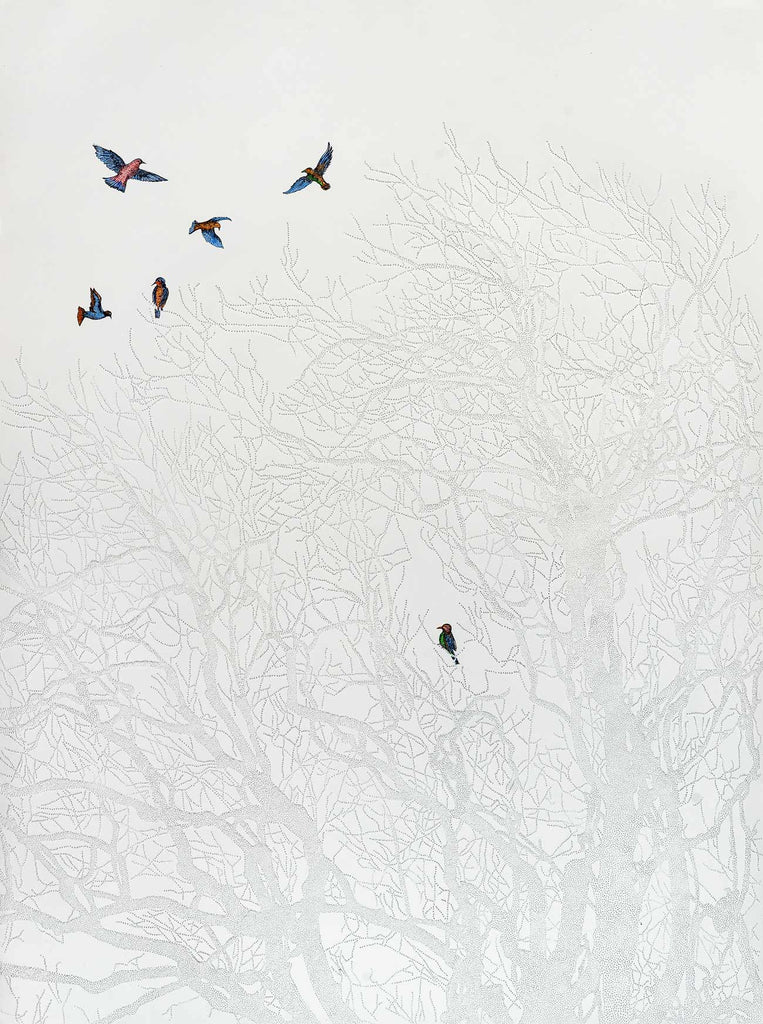 The bird nestled inside the tree symbolises life, hope, and the instinct to keep moving forward despite uncertainty. Its presence suggests that even in silence and complexity, a path remains open. There is always something within us that longs for freedom — if we choose to pursue it. Ultimately, the decision to rise belongs to us.