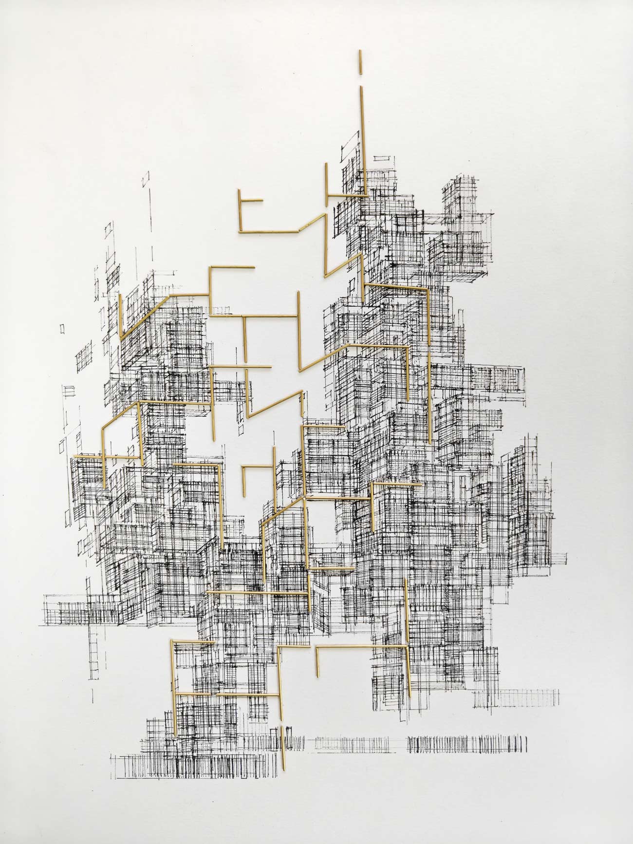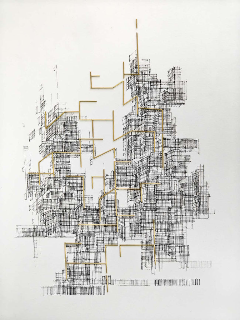 Praveen is best known for his striking abstract depictions of cities. His unusual cityscapes are still and meditative, composed of enigmatic architectural forms that are characters in their own right. Using a mix of mediums such as acrylic, watercolour, pen and ink, and charcoal, his paintings depict urban landscapes in geometric configurations, that are rich in colour and movement. For the artist, cities, with their own sighs, noise, chaos and chatter, are metaphors for the human condition.