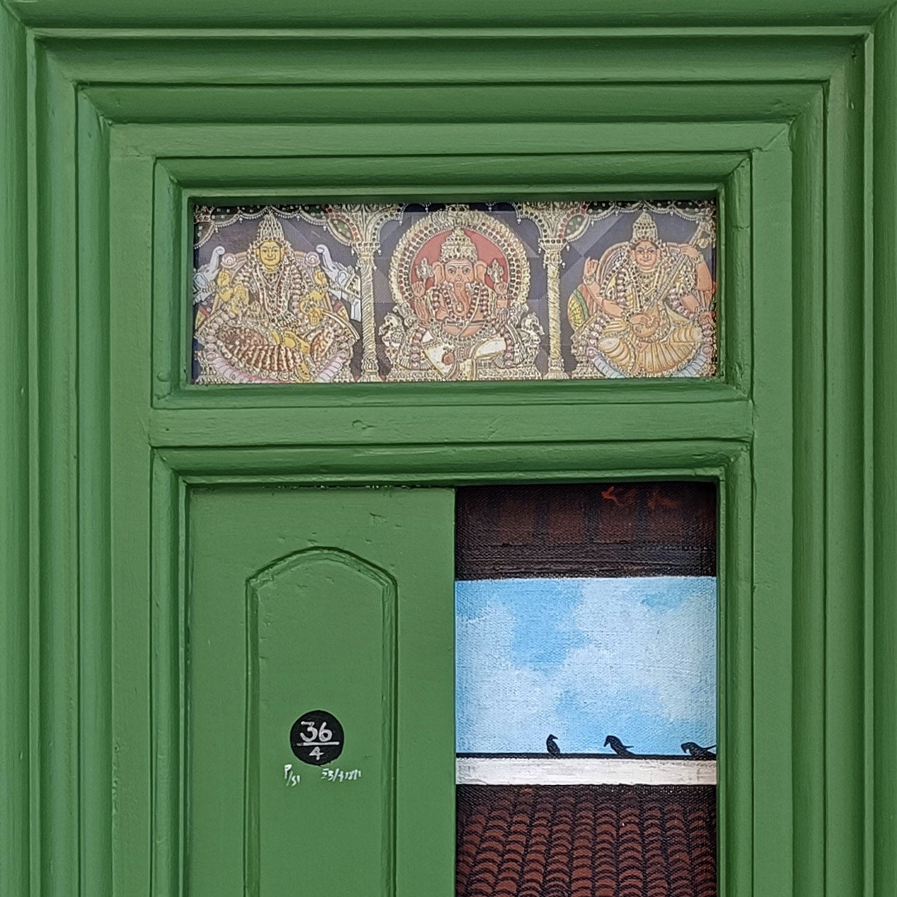 Cycling to college every day in Kumbakonam, Santhana used to pass through streets lined with old, ancestral houses. He keenly observed the verandas buzzing with people, tranquil tulsi tharas and backyards, and the light illuminating different parts of the houses, all leaving a lasting impression on the young artist. The doors of every single house would always be left open, offering a peek into the lives of those inside. That’s where Santhana got his life-long inspiration, and in the last 20 years, he has created more than 900 door paintings.