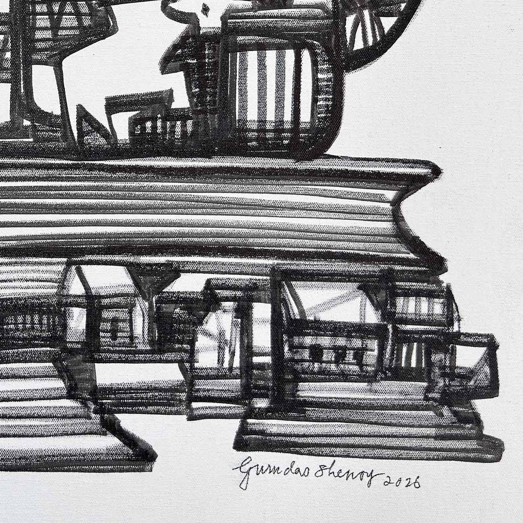 Over the years, drawings, paintings, installations and murals have been a part of Gurudas Shenoy’s art practice. Several of his murals form prominent landmarks in various centres of the corporate world and his paintings and installations are located at corporate and private institutions and residences in India and abroad. A member of the South Kanara Art Council (SKAC) and the Bombay Art Society, Gurudas Shenoy was also the curator for M.F Husain’s museum, “Husain Sankalana”, in Bangalore, from 1991 till its closing in 2008. He is a recipient of the Bendre-Husain National Award by the Bombay Art Society, and has also founded the Shenoy Art Foundation, which supports young, upcoming artists. Gurudas Shenoy lives and works in Bangalore.