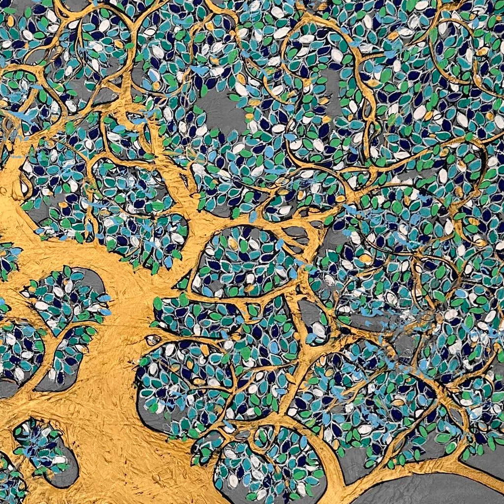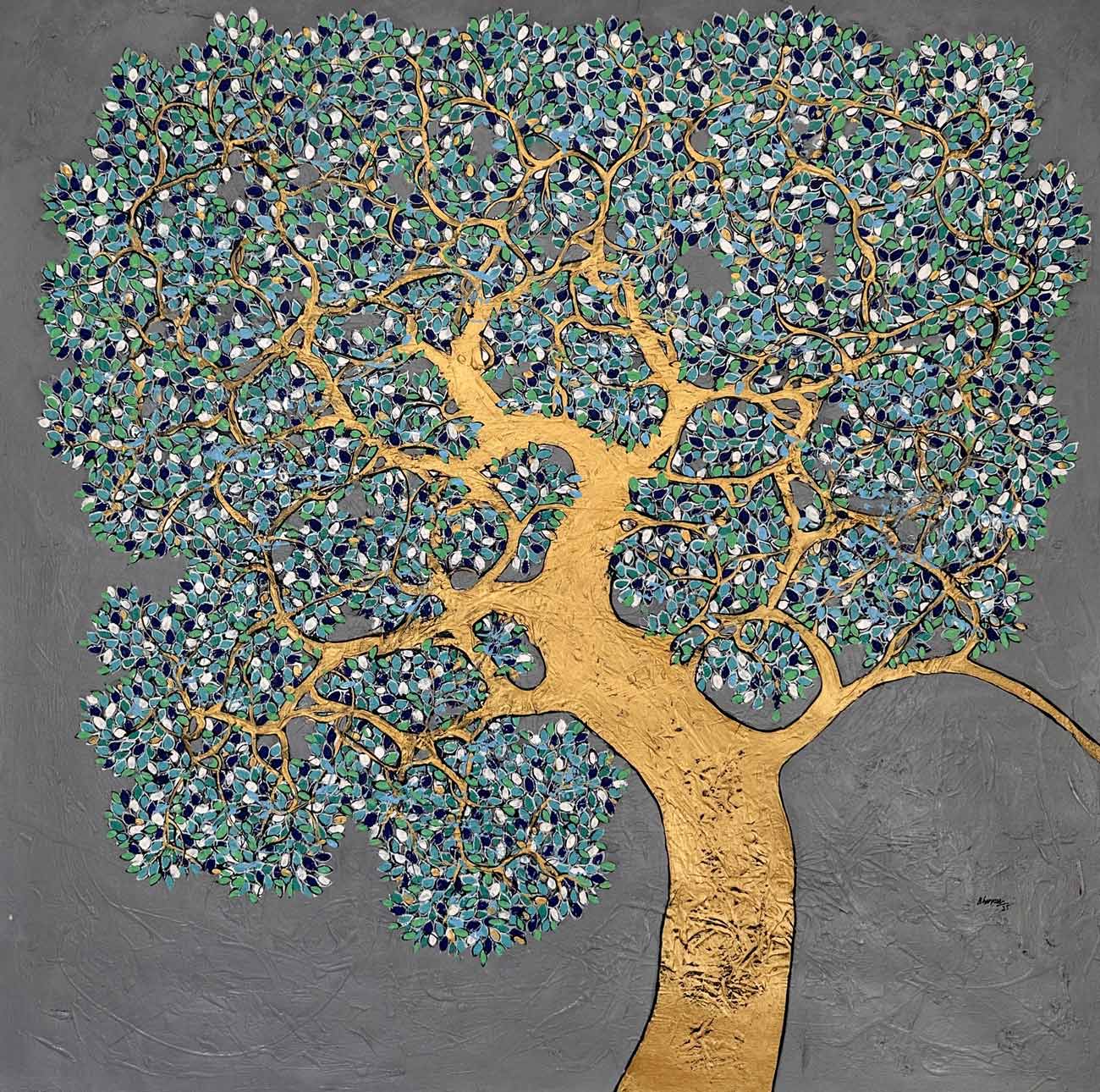 His early experimentation with figurative and street art led Rao to natural landscapes. They, in turn, led to him developing an interest in trees – which were to become his leitmotif, the cornerstone of his body of work as a professional artist. Bhaskara Rao’s connection to trees is rooted in his childhood experiences in Salur, a small town in Vizianagaram, Andhra Pradesh. He fondly remembers his father taking him to plant a mango tree in their farm of cashews and mangoes. Young Rao frequented the fields to see the mango tree grow, a journey that kindled his innocent and ever-growing love for nature. Apart from their significant role in the ecosystem, to Bhaskara Rao, trees are sacred cultural emblems. According to Indian mythology, trees or ‘vrikshas’ were the offspring of Anala, who was married to the great sage Kashyapa. Trees not only yield fruits, but also provide shade and cover, and protect the earth's surface. On a broader scale, Rao’s artworks are a reminder of the innate spiritual bond between trees and the people of his country, as he worries about the deep-rooted damage we cause to nature in our self-serving haste to progress.