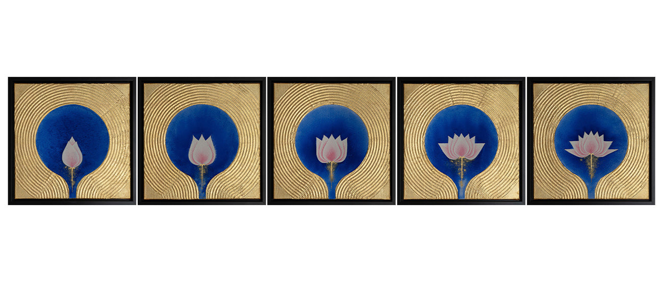 Born into the lap of art and culture in Buldana, Maharashtra – a quaint town close to the famous Ajanta Caves of India, Sangeeta Abhay has dedicated her art to the life and teachings of Gautam Buddha. A graduate of the Government College of Art, Aurangabad, she secured the first rank in her BFA degree at the University, which earned her a fellowship. After getting married, Sangeeta Abhay moved to Bangalore and worked in advertising for 14 years at McCann Worldgroup. Throughout this time, she had a searing desire to spread the message of Lord Buddha, and so she finally decided to translate this vision on to a canvas. Her first solo exhibition was held in Bangalore in 2008.