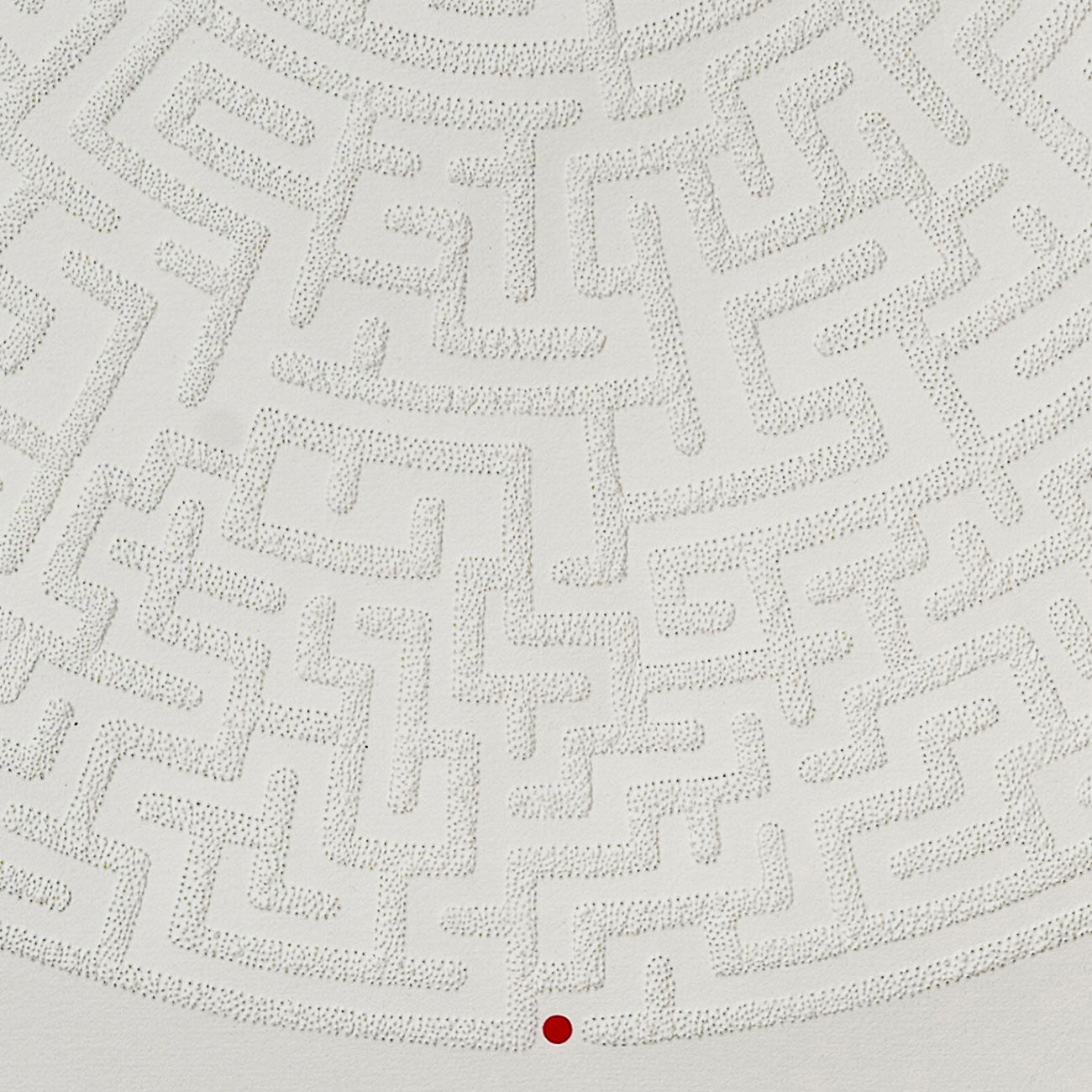 Ashu Gupta is a contemporary artist whose practice is an exercise in introspection. A graduate of the National Institute of Fashion Design in Raipur, Ashu also holds a certificate from London’s Royal College of Art Contemporary Art Summer School. She developed her artistic practice through experimentation with pattern making, allowing intricate motifs to slowly emerge as larger forms. Working predominantly with pen and ink, Ashu uses hundreds of thousands of repeating patterns and stippling in her work. In recent times, she has also incorporated experiments with other techniques such as paper piercing and thread work, in her practice. Ashu’s deeply layered, mostly monochromatic compositions offer the possibility of a new interpretation with every glance. Her subjects are always emphasized, with nothing to distract from the beauty of her stunning pieces.