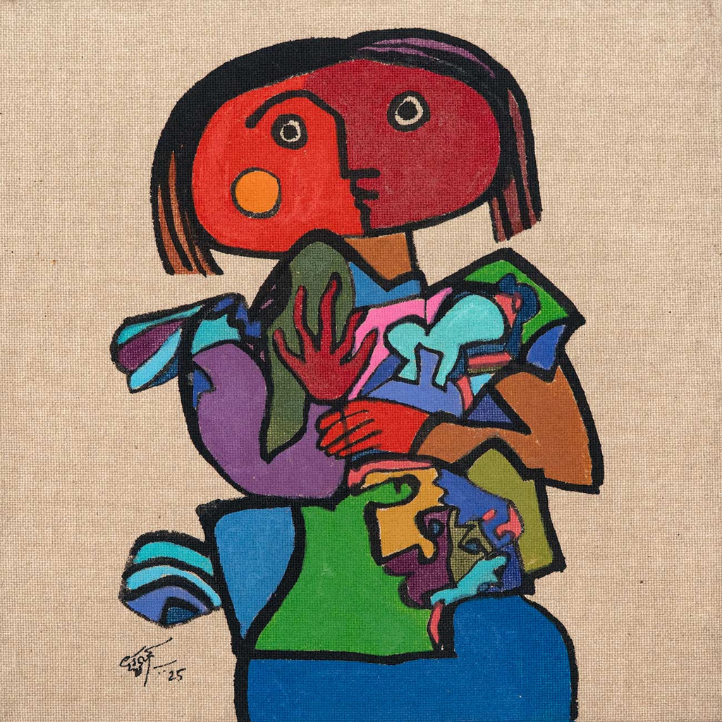 This artwork is part of the Sixty@60 series of artworks by Laxman Aelay. The series, marking the year in which Laxman Aelay turned 60, comprises of sixty lyrical, dreamlike fragments rendered in ink, pigment and textured lines, that inevitably translate absence into substance, and nothing into everything, in a metaphysical sense. Each work is a pause, a small pocket of time where memory, dream, and myth converge in unexpected ways. There are poetic feelings such as a sudden flash of a bird, a face that flickers between joy and solitude, a landscape dissolving into abstraction. Working on such an intimate scale changes the artist’s rhythm. It invites closeness, making every mark intimate, deliberate, and personal. Some panels hold a single figure or animal, while others weave intricate worlds of foliage, water, and sky. They are fragments of stories that were never fully told, images that hover like verses of a poem, waiting to be seen, heard, and felt.