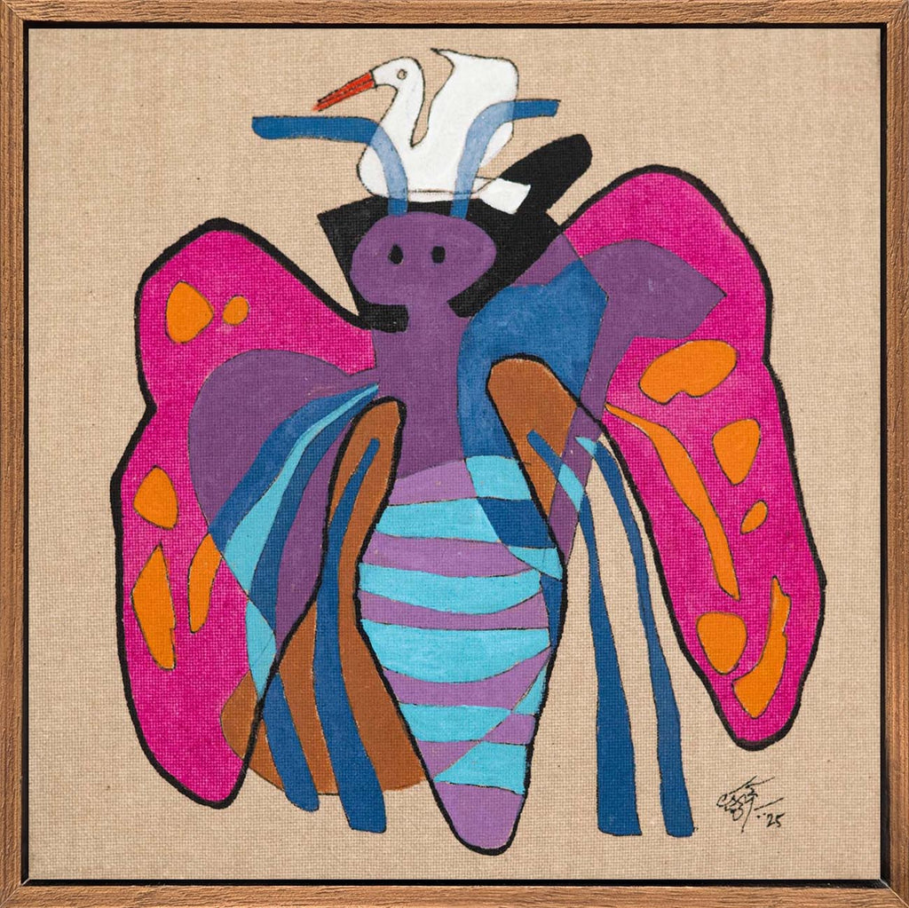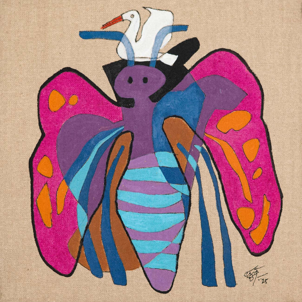 This artwork is part of the Sixty@60 series of artworks by Laxman Aelay. The series, marking the year in which Laxman Aelay turned 60, comprises of sixty lyrical, dreamlike fragments rendered in ink, pigment and textured lines, that inevitably translate absence into substance, and nothing into everything, in a metaphysical sense. Each work is a pause, a small pocket of time where memory, dream, and myth converge in unexpected ways. There are poetic feelings such as a sudden flash of a bird, a face that flickers between joy and solitude, a landscape dissolving into abstraction. Working on such an intimate scale changes the artist’s rhythm. It invites closeness, making every mark intimate, deliberate, and personal. Some panels hold a single figure or animal, while others weave intricate worlds of foliage, water, and sky. They are fragments of stories that were never fully told, images that hover like verses of a poem, waiting to be seen, heard, and felt.