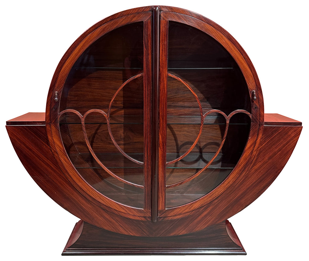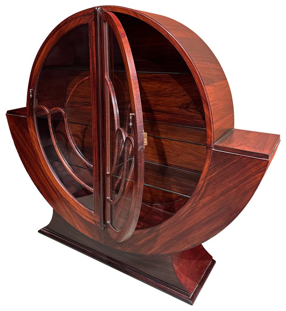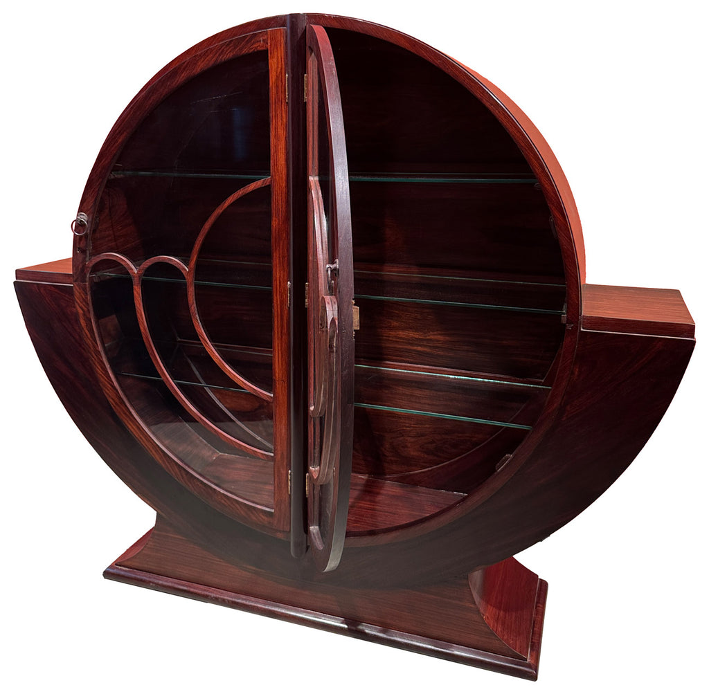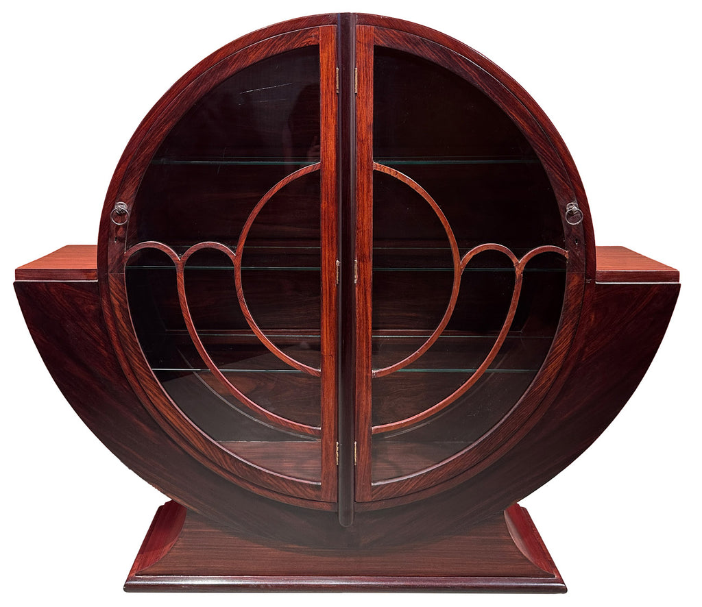 Read MoreArt Deco circular showcase in rosewood from the 1950s. The cupboard has two glass shelves in it.