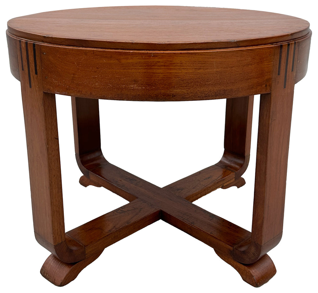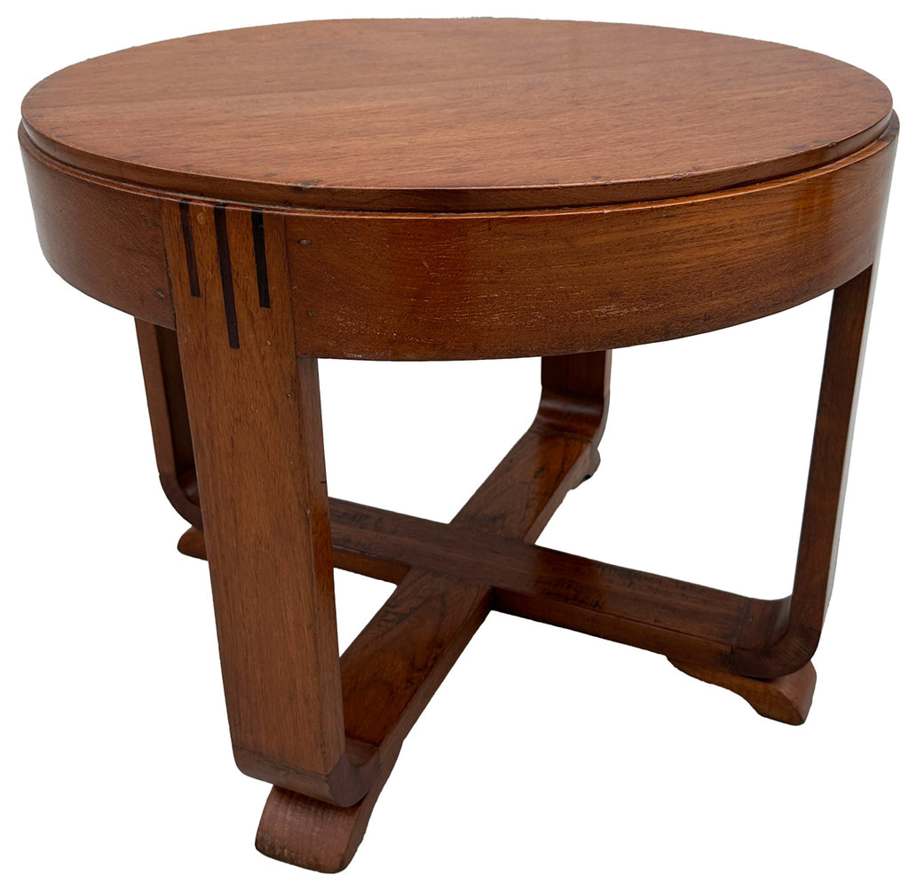 Art Deco side table in teak wood. The piece is from the 1940s/50s and features rosewood inlay.