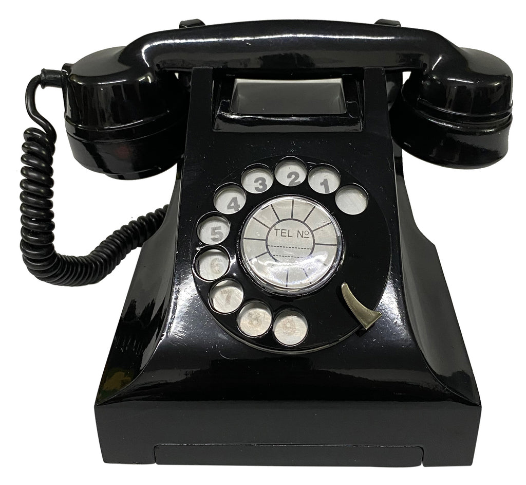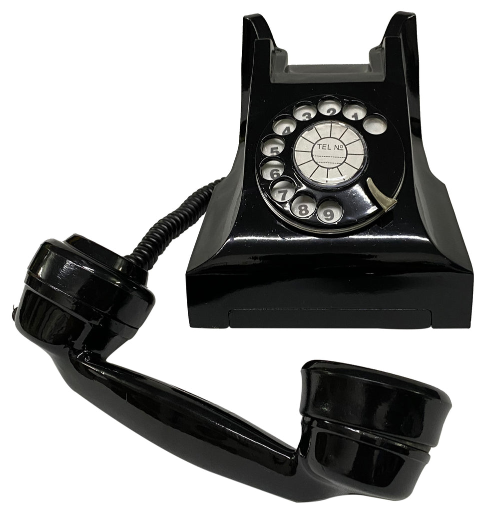 Read MoreThis classic bakelite ITI telephone brings back fond memories from the 1980-90s. It comes in mint condition, completely unused. All the components are fixed to the base plate. There are two air vents in the base and the feet are press fit. The dial strip is whirled in a circular manner, starting at the lower right and anti-clockwise, while the terminal end of the strip is left unnumbered.