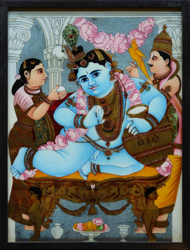 Size: 27 x 21.5 inches (framed) Medium: Reverse Glass Painting Origin: Southern India -
