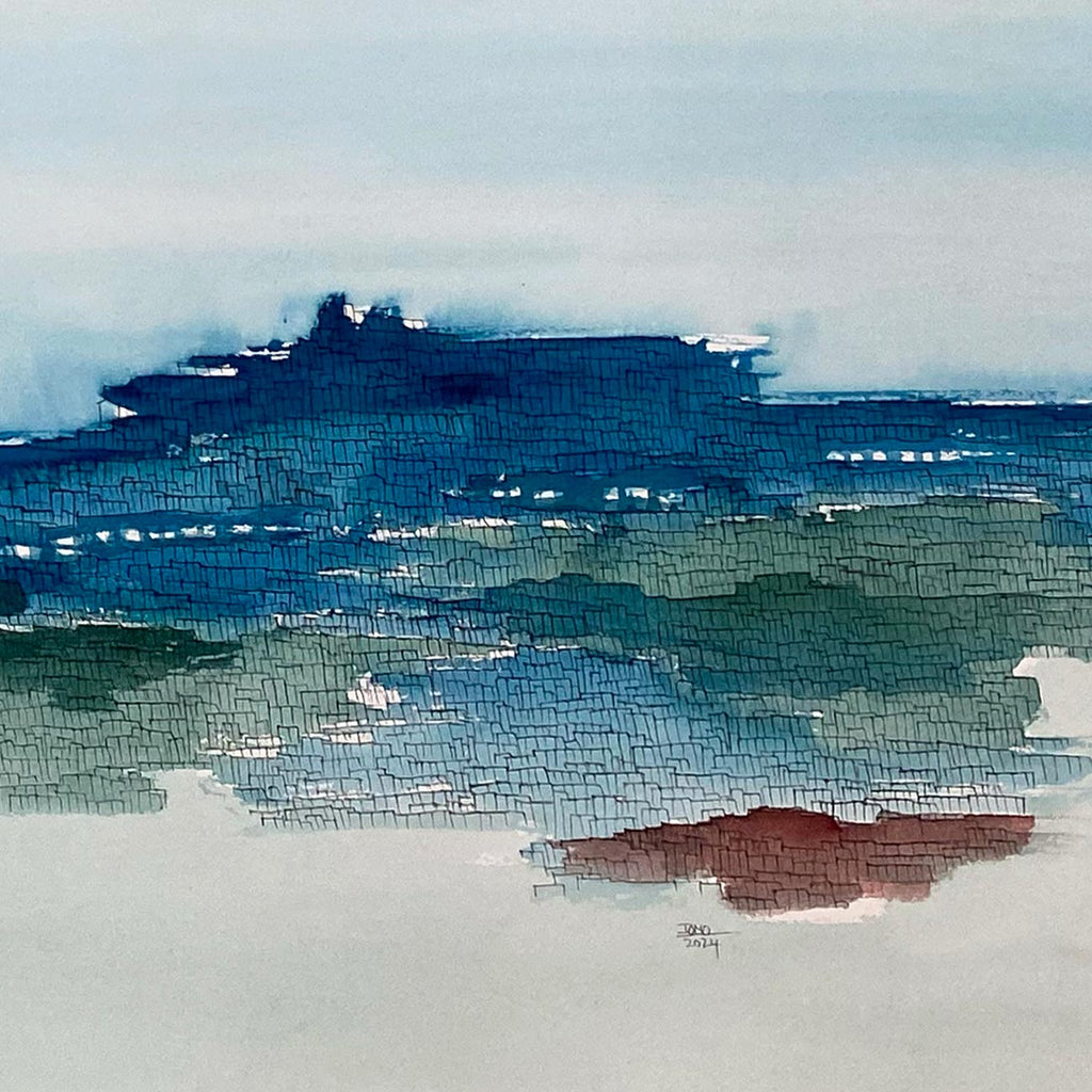 Claire’s art reflects the blend of cultural influences she has had in her journey as an artist - she uses tempera with wash technique as used in traditional ancient Indian arts, as well as watercolours and ink used in East-Asian art. She finds inspiration in legendary artists such as Paul Klee, V.S. Gaitonde and Zao Wou-Ki. Claire intuitively fluctuates between the abstract and figurative, creating subtle worlds that evoke imaginary and symbolic landscapes where nature is animated. In her visual storytelling, there are no boundaries between realms; instead, they simply unfold into each other in a kind of continuum. The symbolic and allegorical cityscapes that she depicts, timeless and unknown, may sometimes evoke metropolises or some undiscovered or mythical cities. She states, “The lines that I paint with my brush are also the manifested form of a vibration, a pattern, a movement, a wave, of which our bodies are made of. My work also speaks about the body, how it carries all our stories, how it is the place where one can transform oneself.”