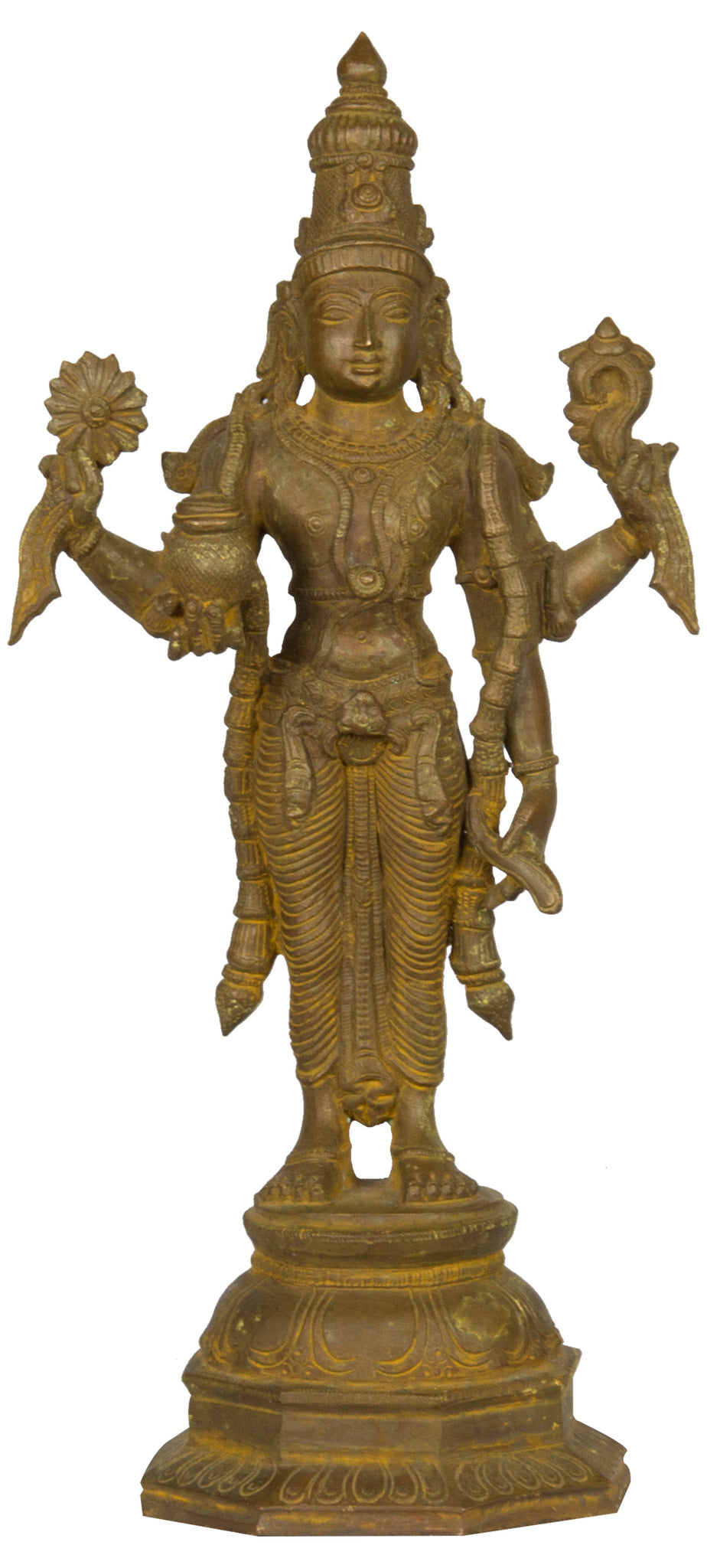 Read MoreAn incarnation of Vishnu, Lord Dhanvantri is the God of Ayurvedic medicine. People pray to him to ask for good health. In two of his hands, he holds a conch and a discus, just like Vishnu. In the other two hands, he holds a pot of 'amrita' (a rejuvinating nectar of the gods), and a leech. Intricately carved, this sculpture is made using the lost wax process. -
