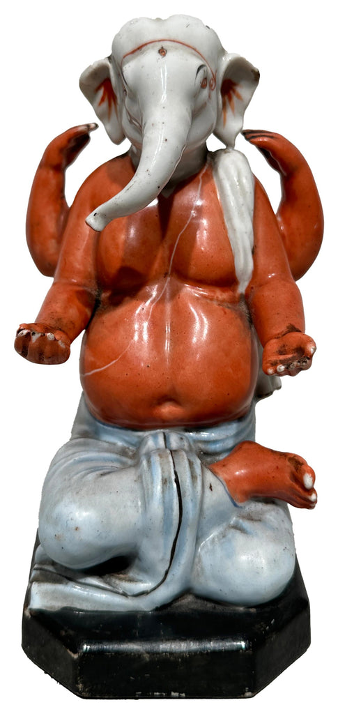 Read MorePorcelain Ganesha made in Germany, most probably by B. Rigold & Bergmann. Ganesha, also known as Ganapati and Ganesh, is one of the most loved and worshipped deities in the Hindu pantheon. He is the god of new beginnings, remover of obstacles, bestower of favours and granter of success.