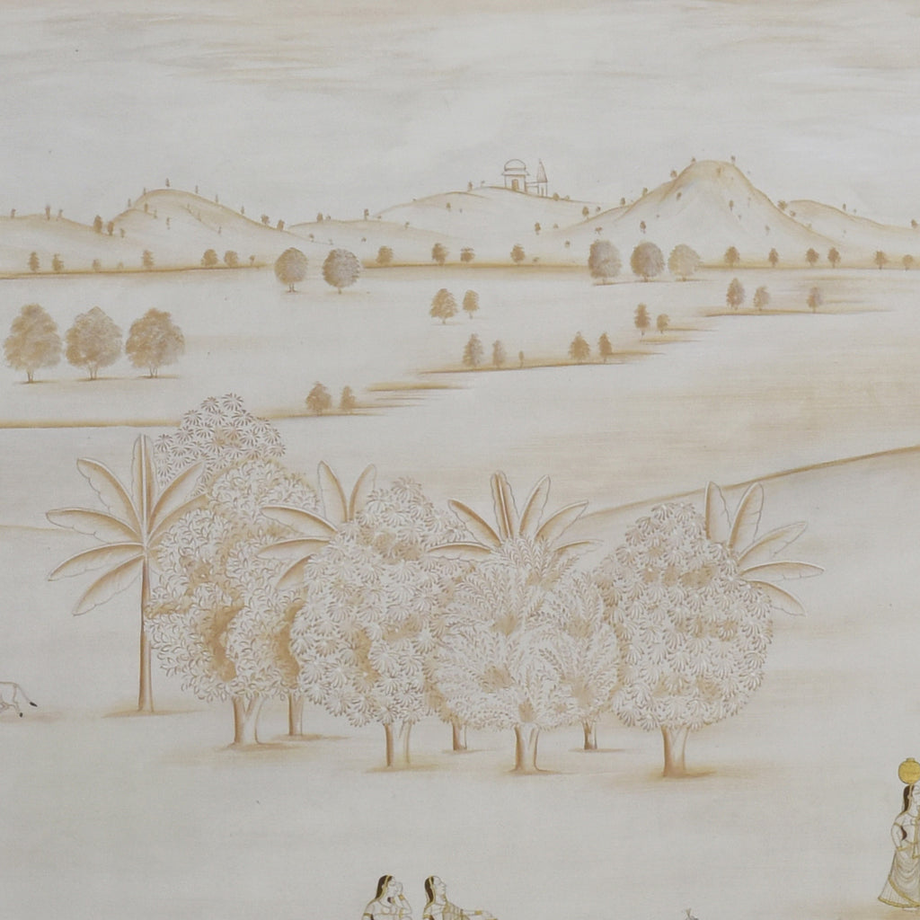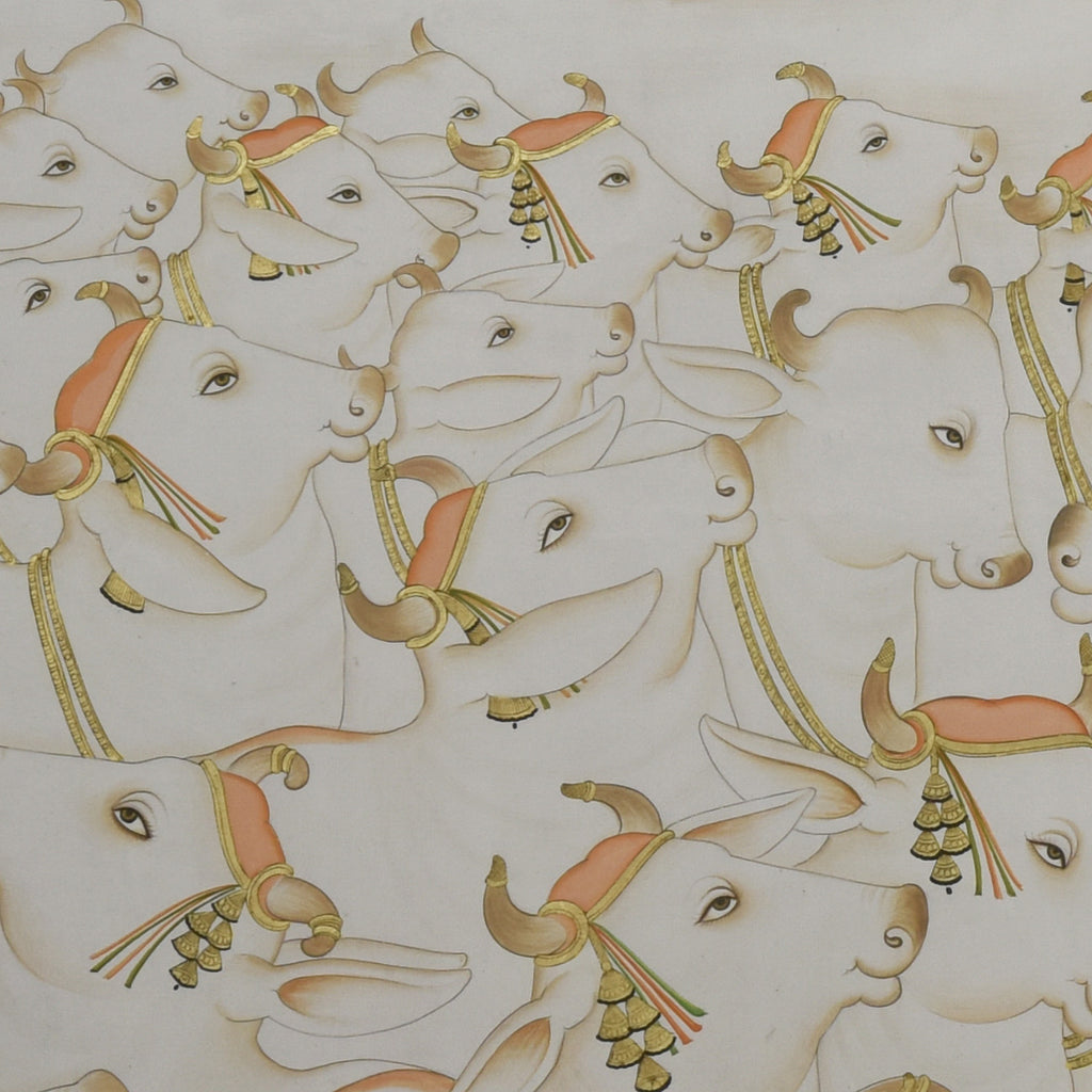 The word Pichwai comes from 'pichh' meaning back, and 'wai', meaning textile hanging. They are made by members of the Pushti Marg sect, founded by Shri Vallabhacharya in the 16th Century. Originally, pichwai paintings were used to decorate the temple of Shrinathji (Shrinathji ki Haveli) in Nathdwara, hung behind the deity to celebrate different seasons, festivals and events in Lord Krishna's life. Over time, pichwais also found a place in the homes of art connoisseurs, owing to their visual appeal. Like several other traditional Indian art forms, the art of Pichwai is also dying, and requires recognition and revival.