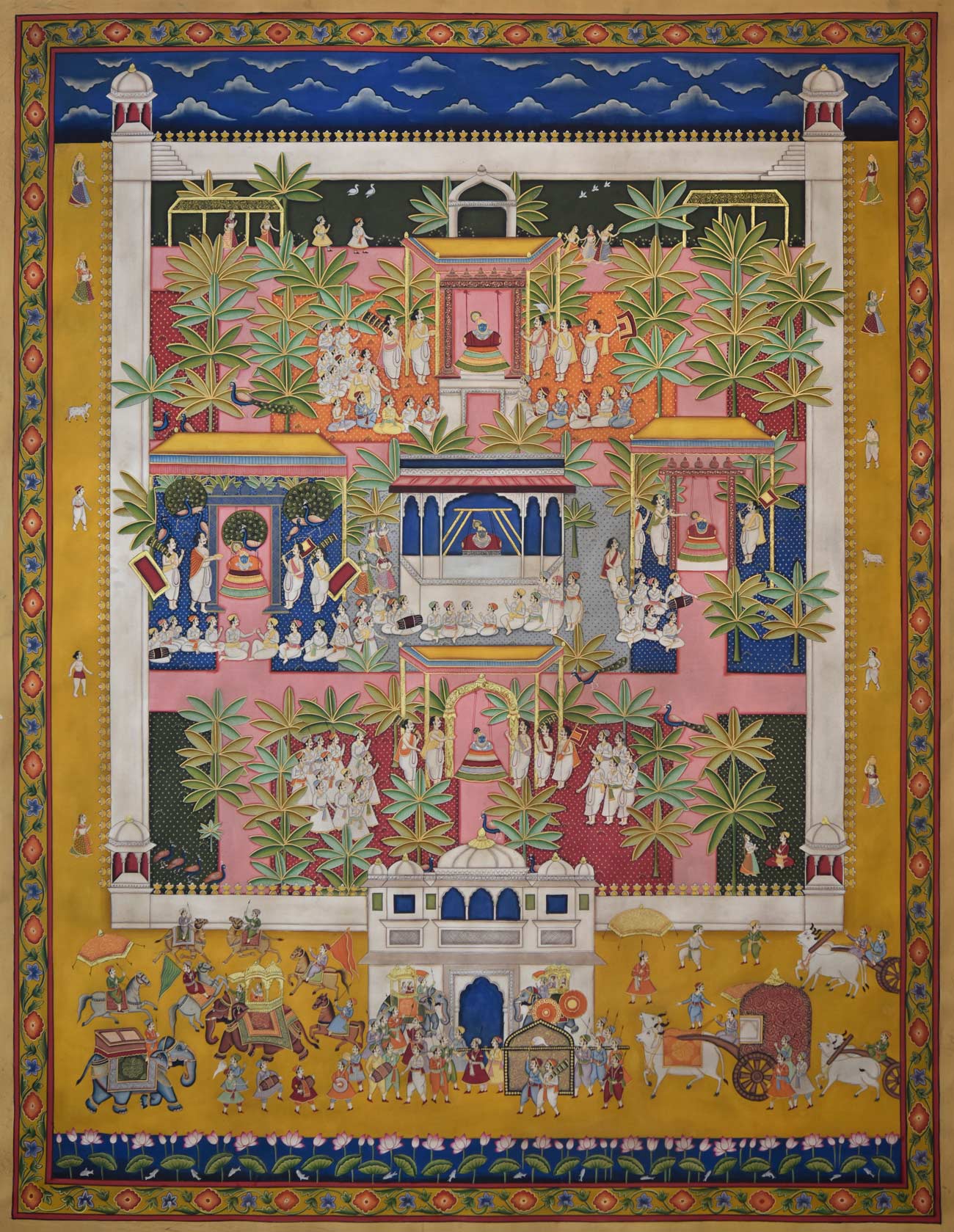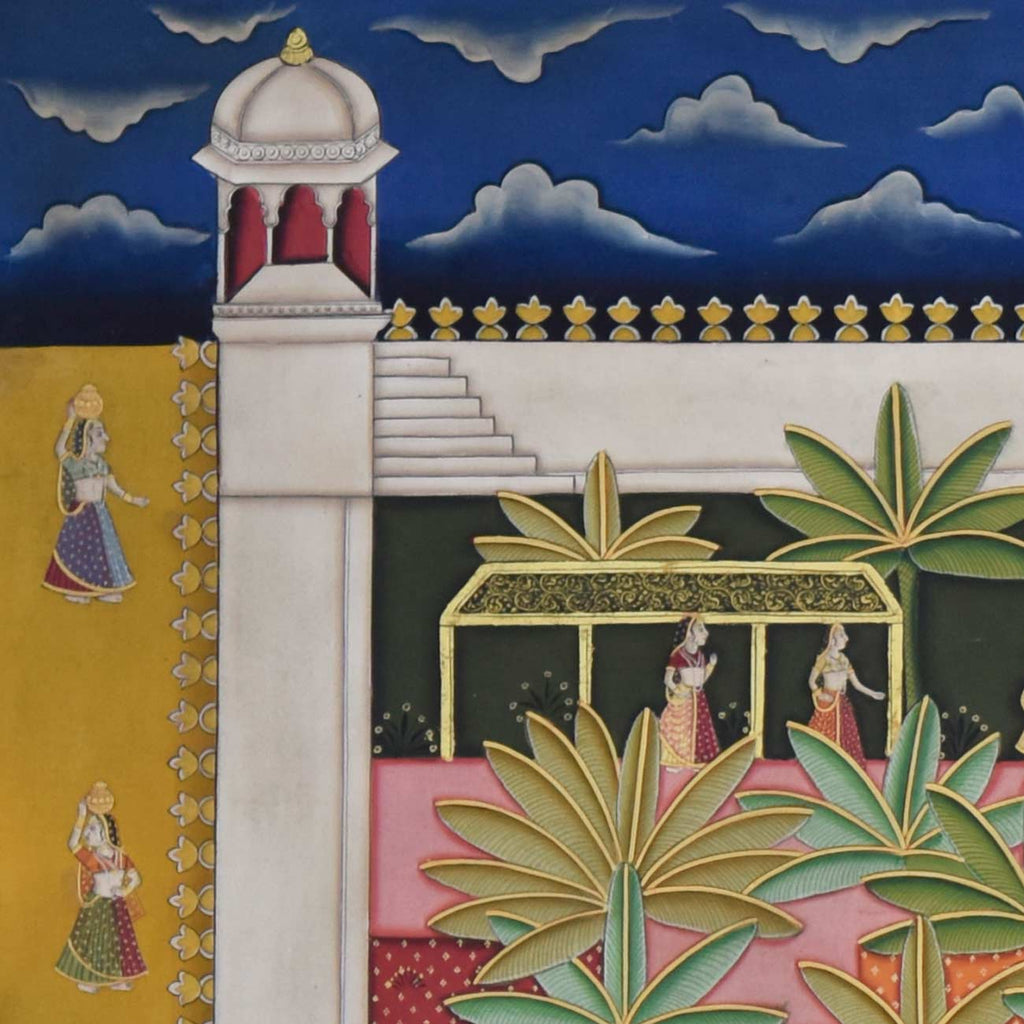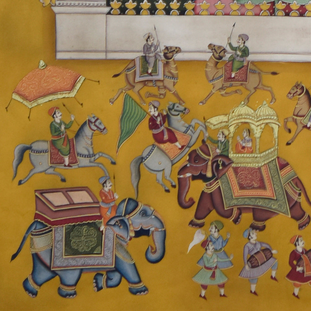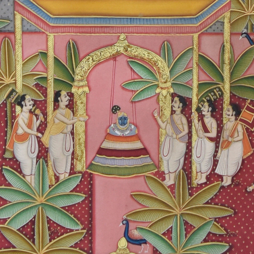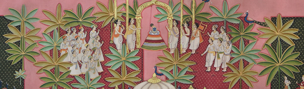 Pichwais are best framed with regular or non-reflective glass. Artworks should be displayed away from direct sunlight and breeze. To clean any accumulated dust, use a soft, dry brush or cloth very lightly on the glass surface or the frame. Make sure there is no moisture on the brush or cloth before cleaning the surface. Once a year, remove the artwork from the wall for a couple of days to let the wall breathe and avoid moisture accumulation. Minor discolouration over the years is normal and to be expected. -