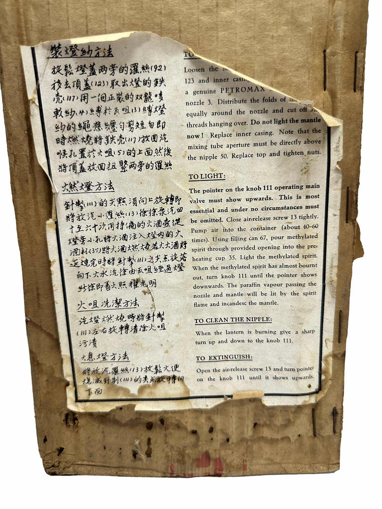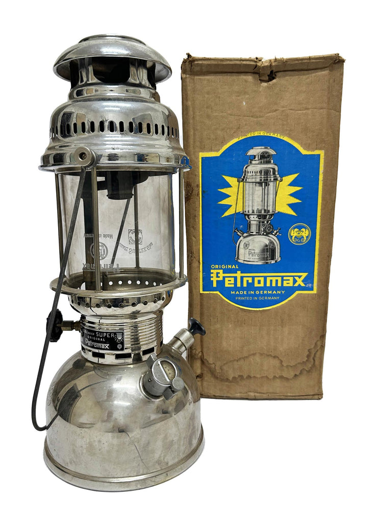 Read MoreThis is an original Petromax 826/350cp SUPER, never used and still in the box with original instructions. It is made in Germany. Note: There are no accessories in the box. The Petromax lamp was created in 1910 in Germany by Max Graetz (1851–1937), who also named the brand. The name Petromax derives from "Petroleum" and "Max Graetz". Graetz was president of the firm Ehrich & Graetz in Berlin, which developed the lamp, and he was also the primary designer. The design was such a success that it is still being used to this day. The name Petromax has also become synonymous with paraffin pressure lamps in many countries.