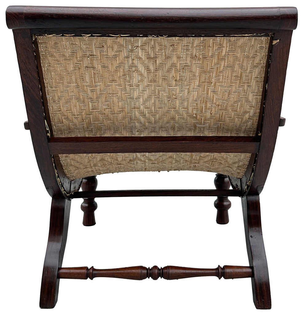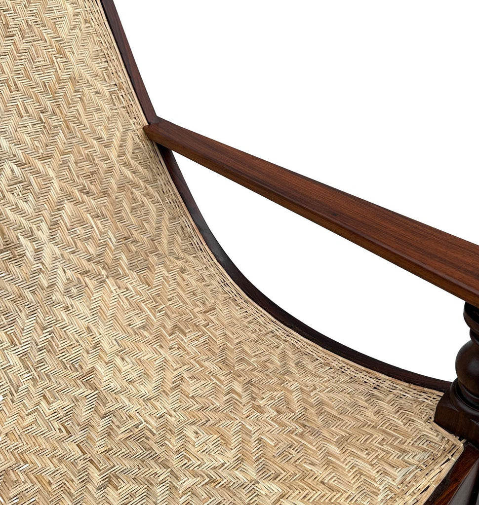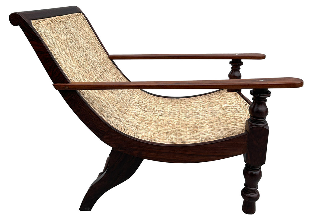 Rosewood and cane Planter’s Chair from the 1920s/30s. The Planter's Chair is believed to have originated in the Caribbean and was introduced to India in the 17th century by Europeans.