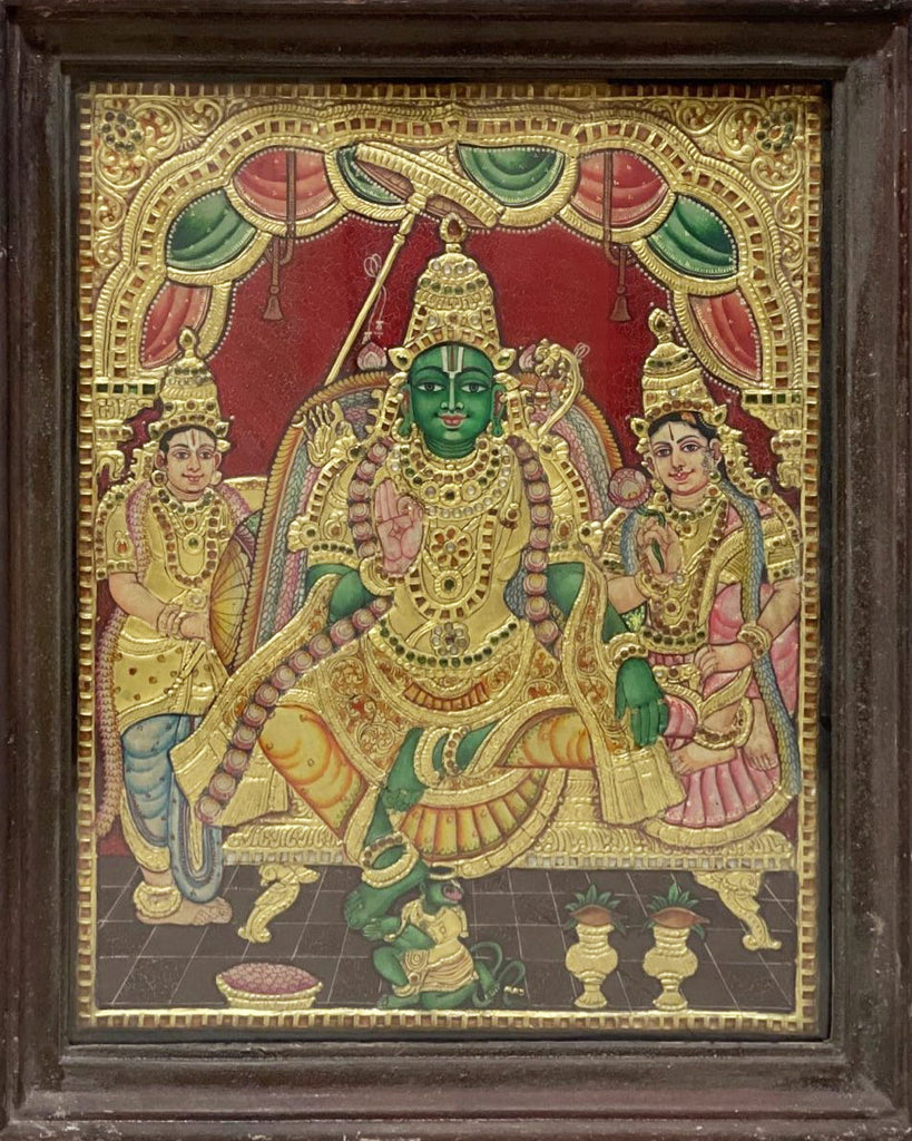 Read MoreTanjore paintings or Thanjavur paintings are named after the city of Thanjavur in Tamil Nadu, India, where they developed as an artform. As early as the 1600s, the city of Thanjavur, under the leadership of the Nayakas, served as the cultural capital for several kingdoms that ruled South India, actively encouraging painting, music, dance and literature. The unique style of Thanjavur or Tanjore painting as known today, is known to have flourished in the Maratha court of Thanjavur between the 17th and 19th centuries. King Serfoji II played a particularly significant role in developing this artform.