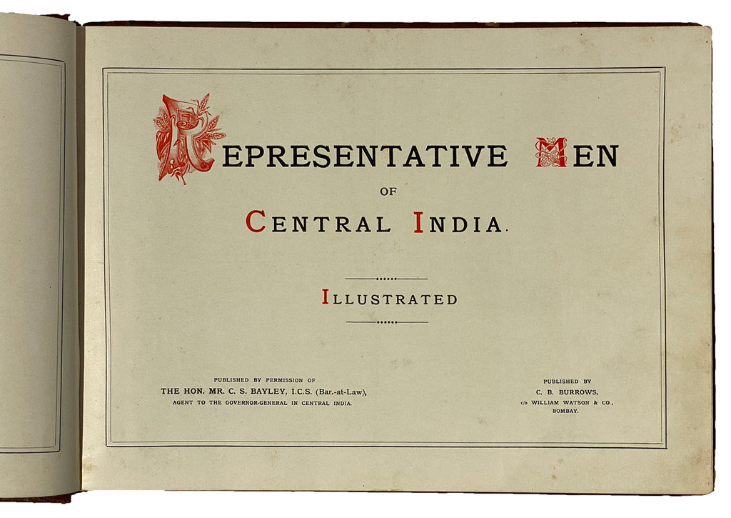 Read More‘Representative Men of Central India’ published by permission The Hon. Mr. C.S. Bayley, I.C.S. (bar-at-law), agent to the governor-general in Central India. 1900. Published by C.B. Burrows, c/o Wiliam Watson & Co, Bombay. Illustrated with numerous monochrome portraits throughout, some full page.