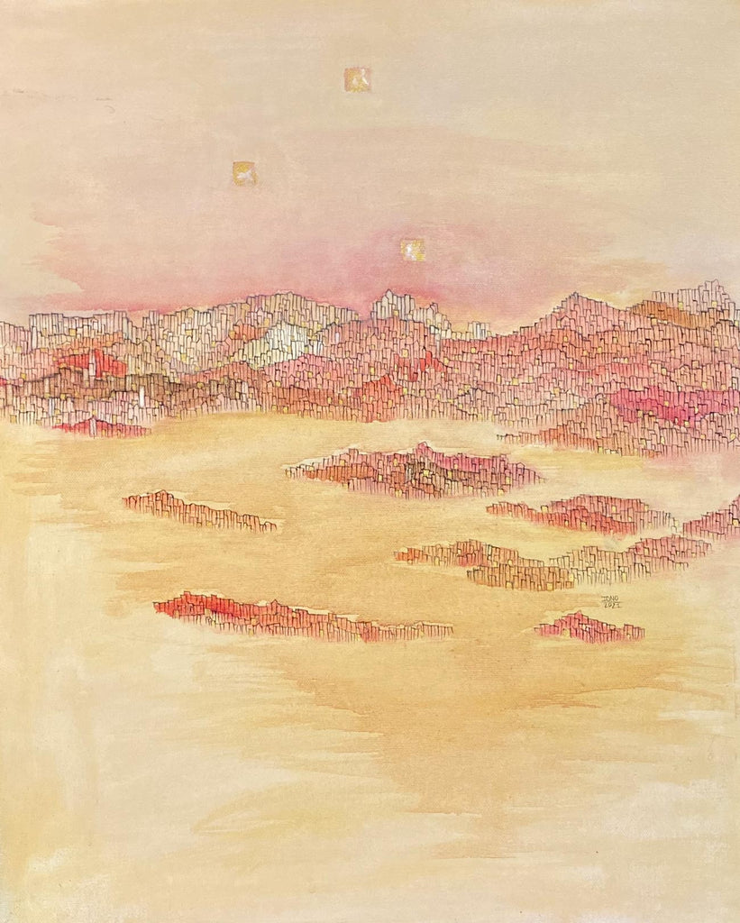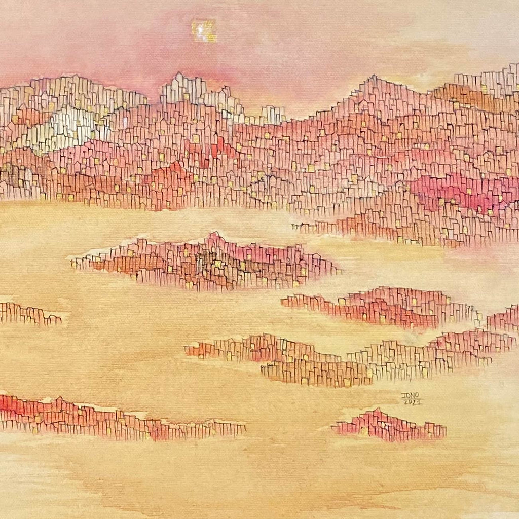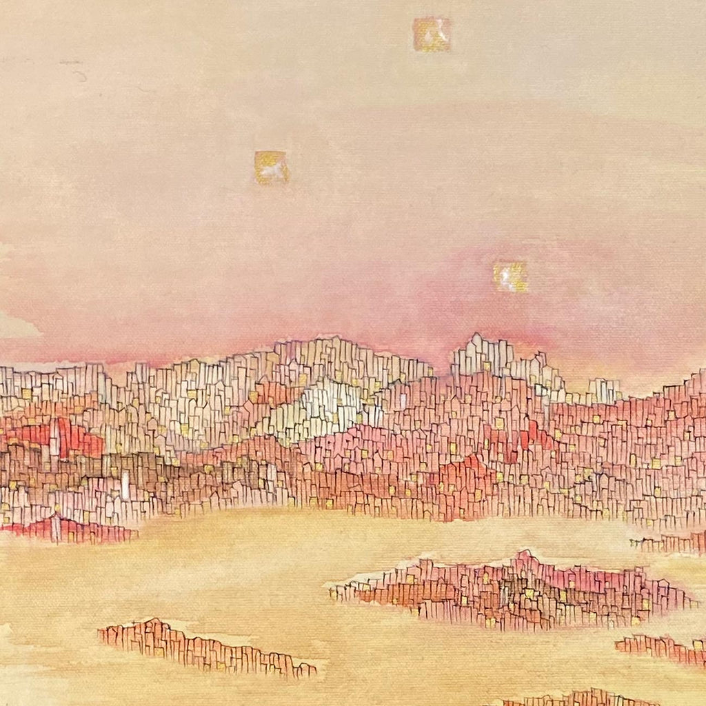 Claire’s art reflects the blend of cultural influences she has had in her journey as an artist - she uses tempera with wash technique as used in traditional ancient Indian arts, as well as watercolours and ink used in East-Asian art. She finds inspiration in legendary artists such as Paul Klee, V.S. Gaitonde and Zao Wou-Ki. Claire intuitively fluctuates between the abstract and figurative, creating subtle worlds that evoke imaginary and symbolic landscapes where nature is animated. In her visual storytelling, there are no boundaries between realms; instead, they simply unfold into each other in a kind of continuum. The symbolic and allegorical cityscapes that she depicts, timeless and unknown, may sometimes evoke metropolises or some undiscovered or mythical cities. She states, “The lines that I paint with my brush are also the manifested form of a vibration, a pattern, a movement, a wave, of which our bodies are made of. My work also speaks about the body, how it carries all our stories, how it is the place where one can transform oneself.”