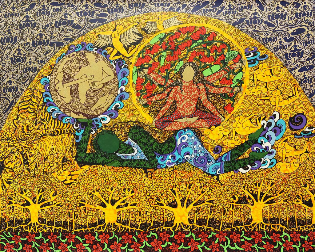 Rejoicing in the female's power, energy, beauty and sensuality, Seema Kohli’s creations portray the various facets of a woman. Shakti, the higher cosmic energy that radiates through the female embodiment has been deeply dealt with and depicted in most of her works. A self-taught artist with over three decades of practice, she draws inspiration from mythology, philosophy, iconography and literature to create stories that reclaim the lost feminine narrative in cultural history.