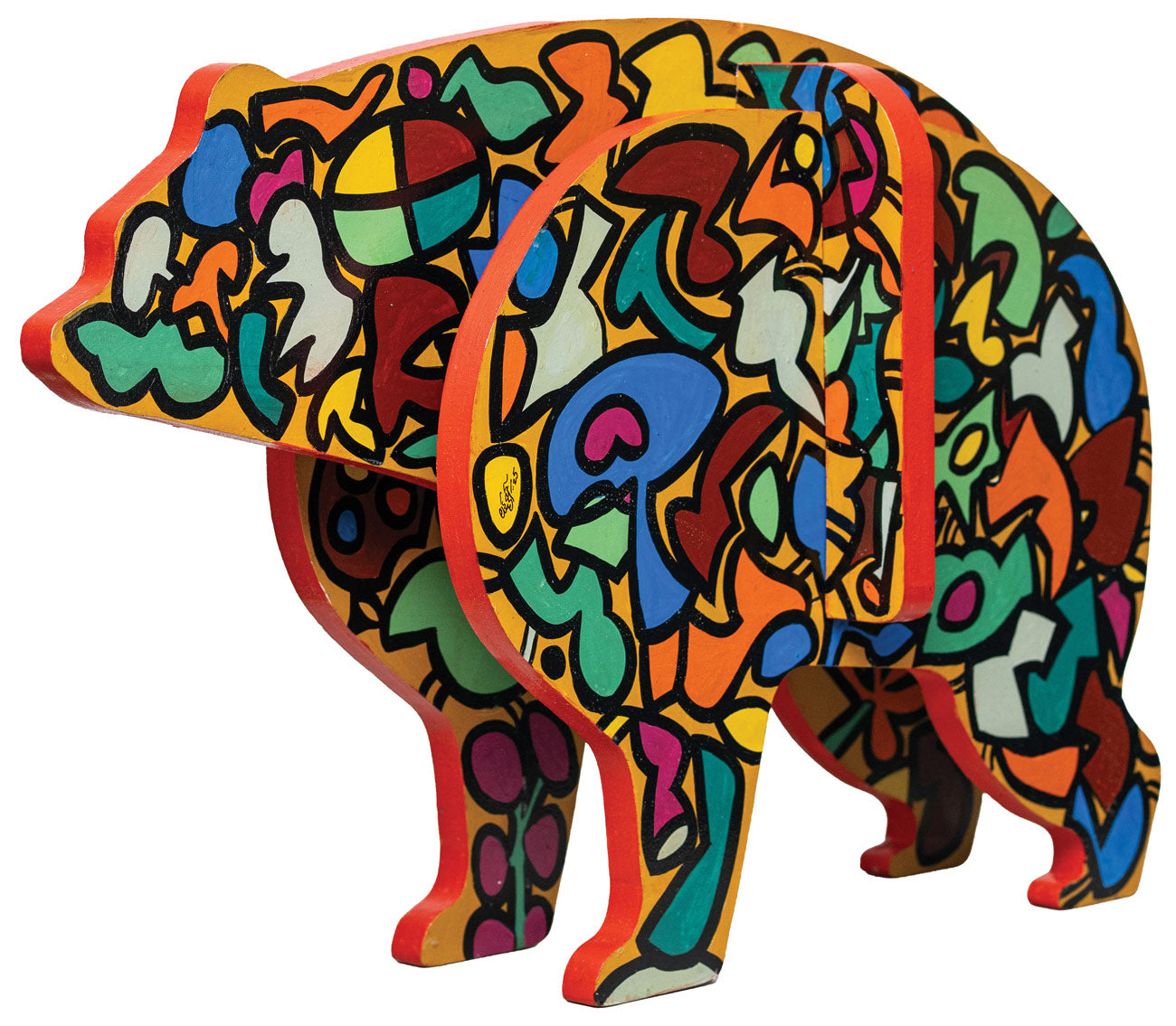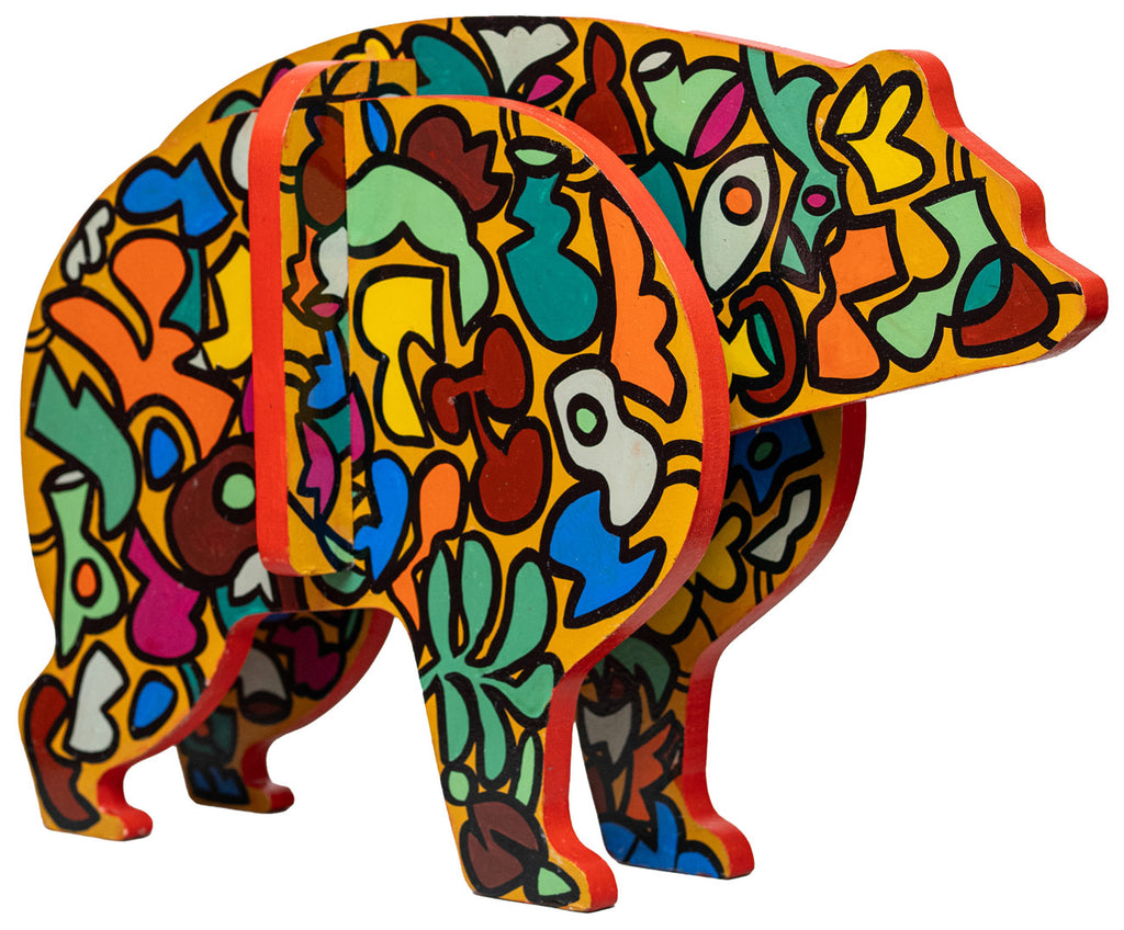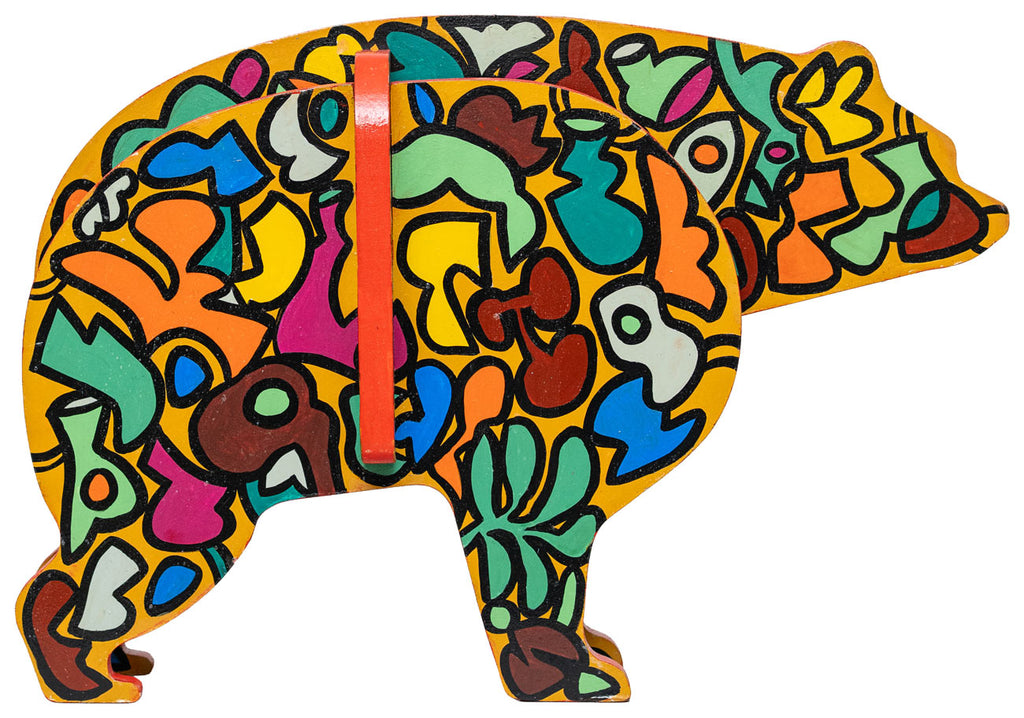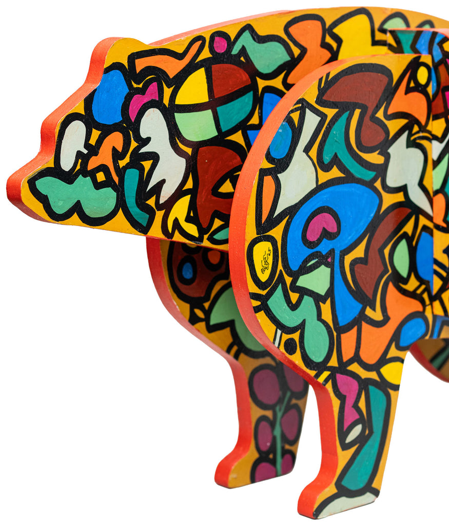 Read MoreThis sculpture is part of a series titled 'Domesticated Animilia'. The sculptural installations are derived from models of children’s toys, where the striking colours and sturdy lines imitate the world of toddlers with joyful expressions, while replicating the wilderness of childhood experiences. The creations bring forth a hidden side of Laxman Aelay — his role as a playful grandfather to his three grandsons, translating his emotions through these domesticated wild beasts in toy-like forms.