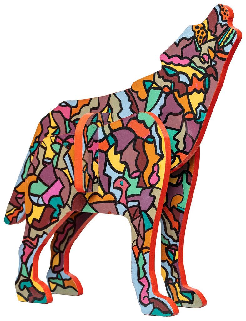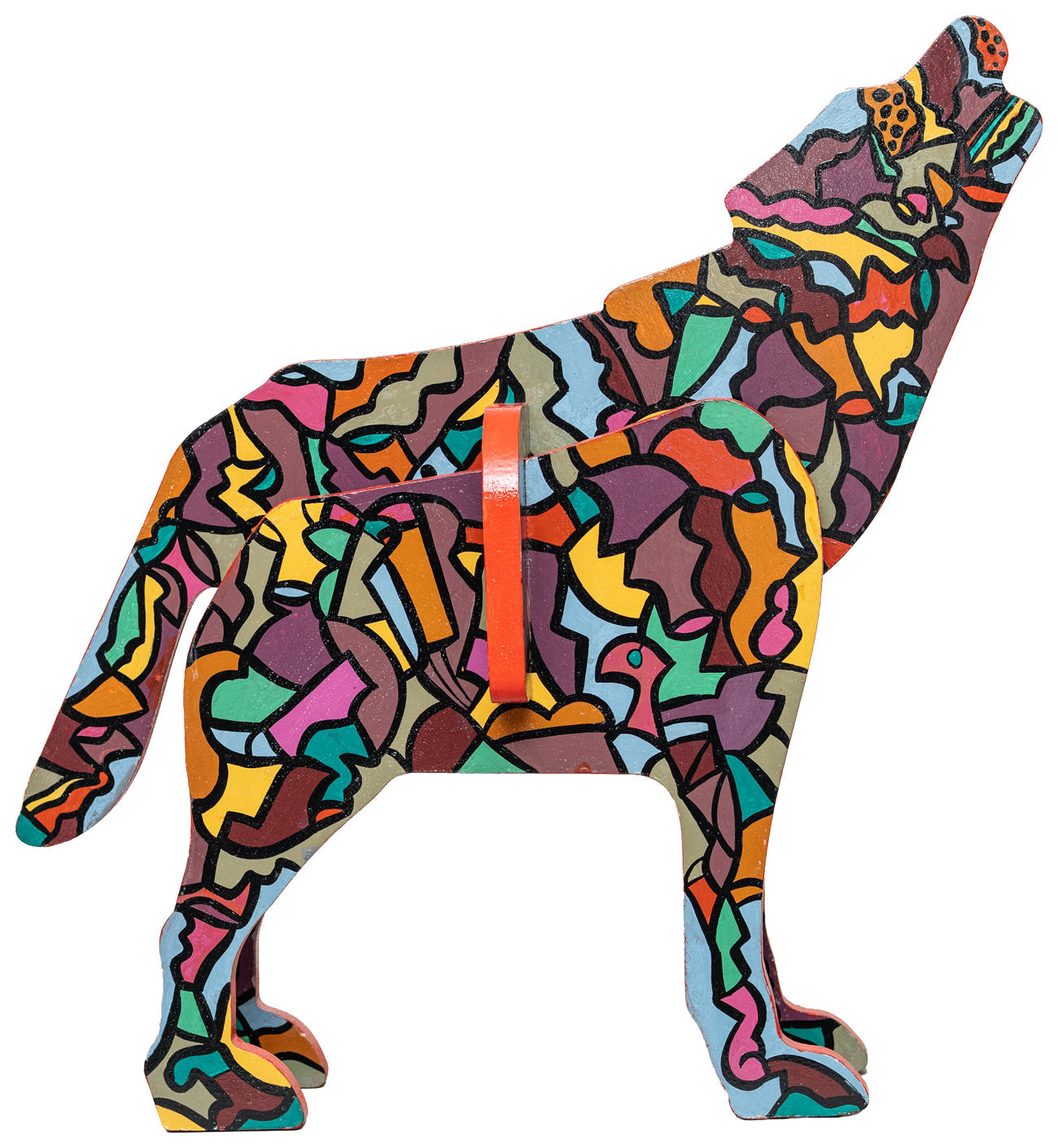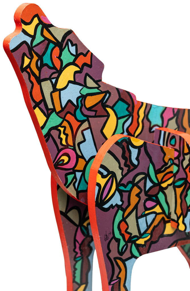 Read MoreThis sculpture is part of a series titled 'Domesticated Animilia'. The sculptural installations are derived from models of children’s toys, where the striking colours and sturdy lines imitate the world of toddlers with joyful expressions, while replicating the wilderness of childhood experiences. The creations bring forth a hidden side of Laxman Aelay — his role as a playful grandfather to his three grandsons, translating his emotions through these domesticated wild beasts in toy-like forms.