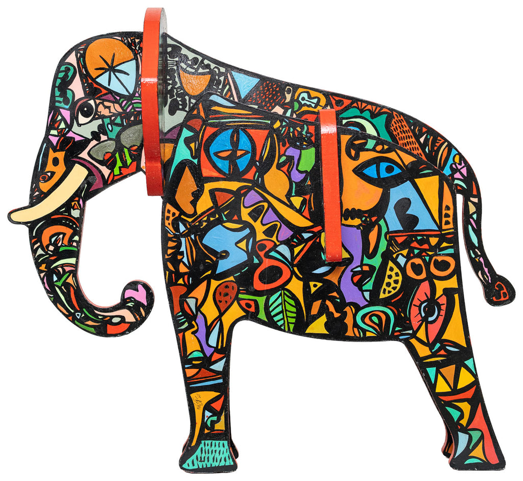 Read MoreThis sculpture is part of a series titled 'Domesticated Animilia'. The sculptural installations are derived from models of children’s toys, where the striking colours and sturdy lines imitate the world of toddlers with joyful expressions, while replicating the wilderness of childhood experiences. The creations bring forth a hidden side of Laxman Aelay — his role as a playful grandfather to his three grandsons, translating his emotions through these domesticated wild beasts in toy-like forms.