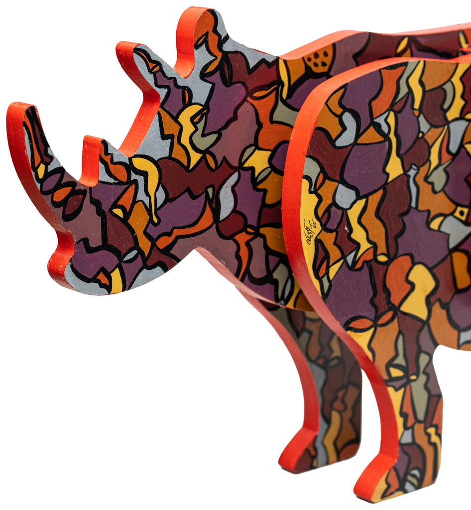 This sculpture is part of a series titled 'Domesticated Animilia'. The sculptural installations are derived from models of children’s toys, where the striking colours and sturdy lines imitate the world of toddlers with joyful expressions, while replicating the wilderness of childhood experiences. The creations bring forth a hidden side of Laxman Aelay — his role as a playful grandfather to his three grandsons, translating his emotions through these domesticated wild beasts in toy-like forms.