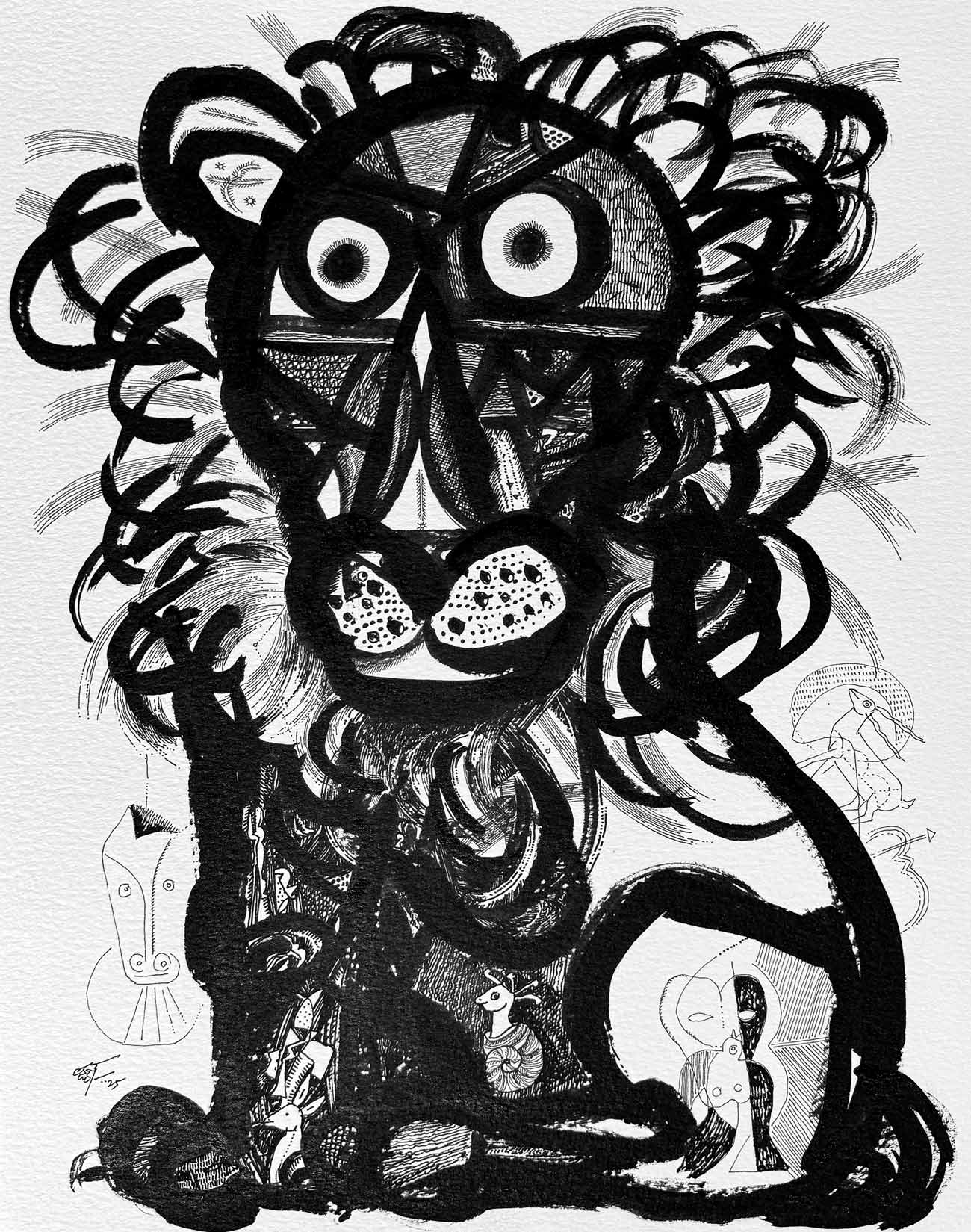 continuity. Each creature is formed through bold, expressive strokes layered with intricate inner drawings, embodying both strength and sensitivity.