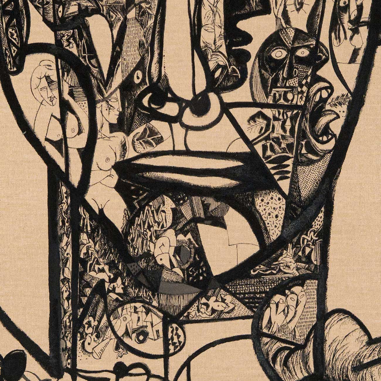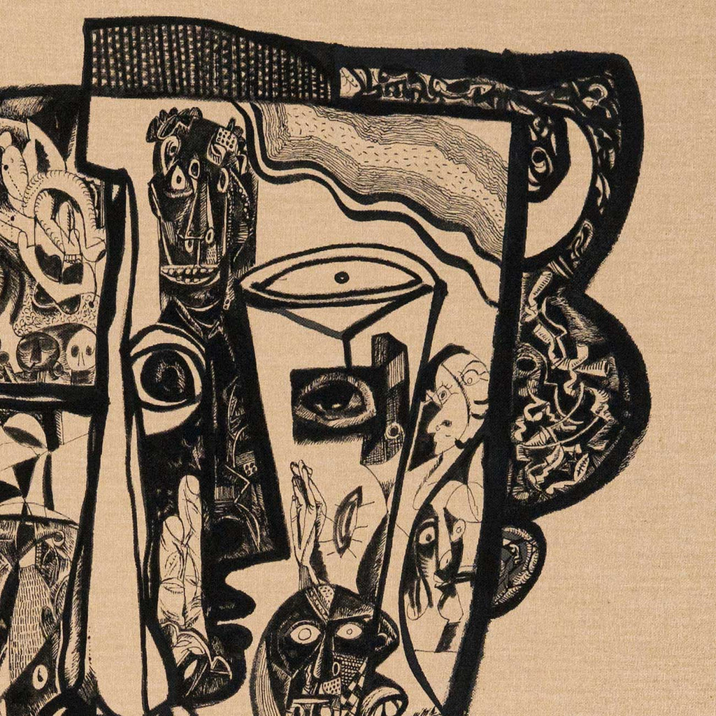 This artwork is part of the 'Remembering Souza' series. Constructing the human figure as a site of conflict, desire, and irreverence, this series is Laxman Aelay’s complementary homage to highly revered modern progressive Indian artist, F.N. Souza (1924-2002). It manifests by confronting the restless energy of the artist in creating an uncompromising modernist depiction of the human figure as never fixed, but always shifting between the sacred and the profane. In doing so, dense layers of strokes cry out to the unfinished and unsettling condition of human life.