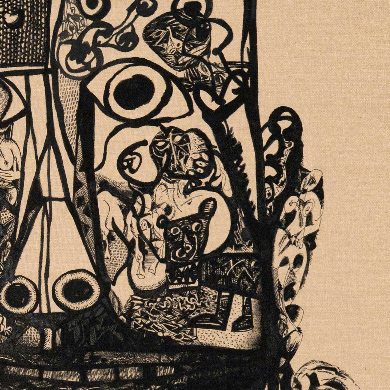 Read MoreThis artwork is part of the 'Remembering Souza' series. Constructing the human figure as a site of conflict, desire, and irreverence, this series is Laxman Aelay’s complementary homage to highly revered modern progressive Indian artist, F.N. Souza (1924-2002). It manifests by confronting the restless energy of the artist in creating an uncompromising modernist depiction of the human figure as never fixed, but always shifting between the sacred and the profane. In doing so, dense layers of strokes cry out to the unfinished and unsettling condition of human life.