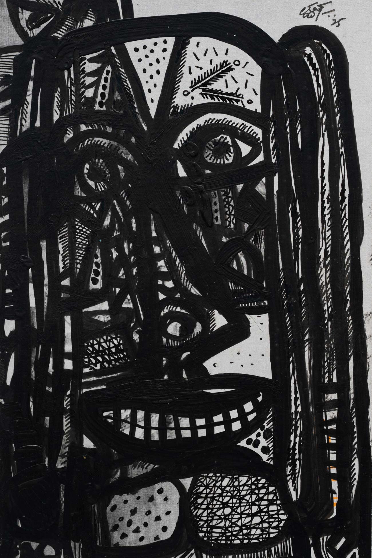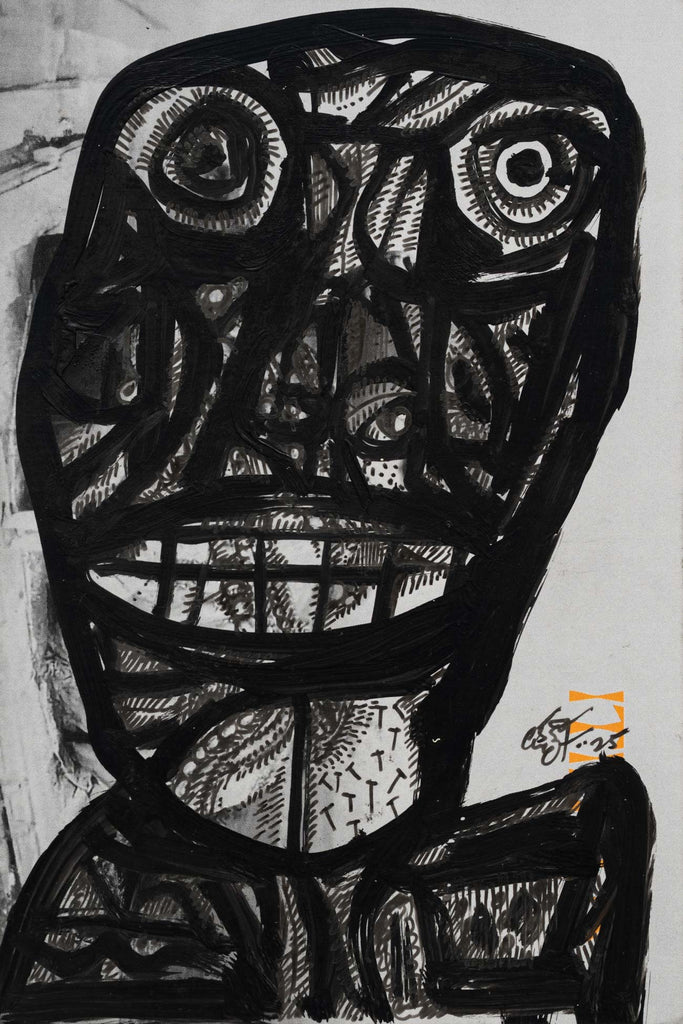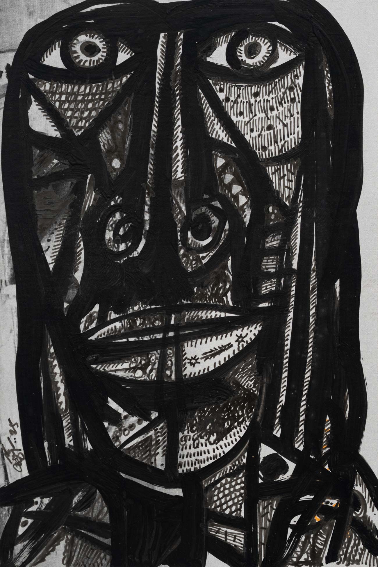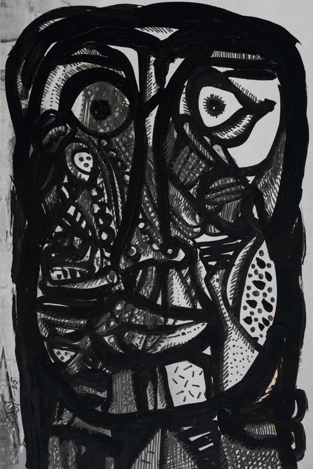 Read MoreThis artwork is part of the 'Remembering Souza' series. Constructing the human figure as a site of conflict, desire, and irreverence, this series is Laxman Aelay’s complementary homage to highly revered modern progressive Indian artist, F.N. Souza (1924-2002). It manifests by confronting the restless energy of the artist in creating an uncompromising modernist depiction of the human figure as never fixed, but always shifting between the sacred and the profane. In doing so, dense layers of strokes cry out to the unfinished and unsettling condition of human life.