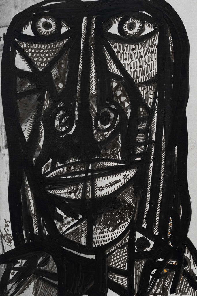 This artwork is part of the 'Remembering Souza' series. Constructing the human figure as a site of conflict, desire, and irreverence, this series is Laxman Aelay’s complementary homage to highly revered modern progressive Indian artist, F.N. Souza (1924-2002). It manifests by confronting the restless energy of the artist in creating an uncompromising modernist depiction of the human figure as never fixed, but always shifting between the sacred and the profane. In doing so, dense layers of strokes cry out to the unfinished and unsettling condition of human life.