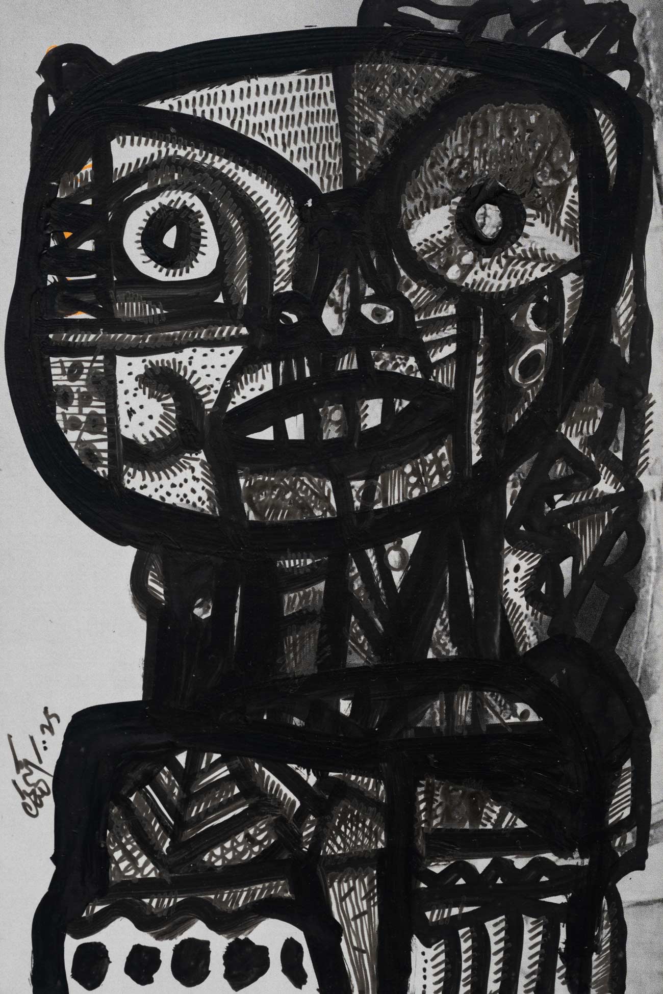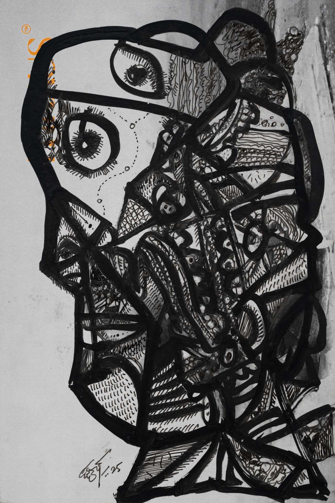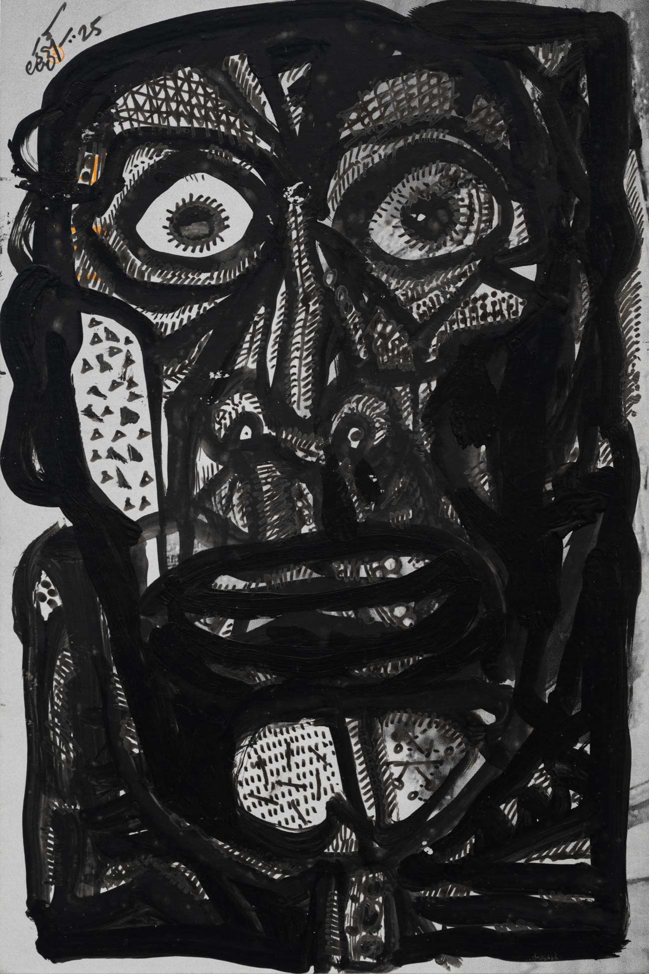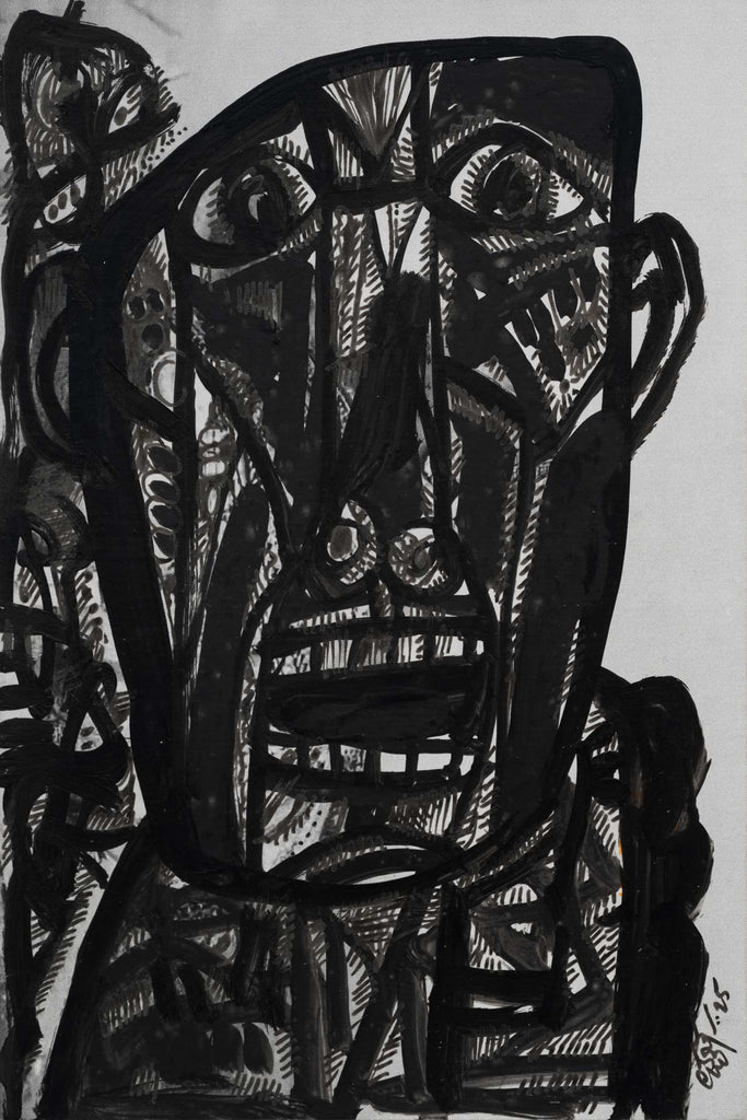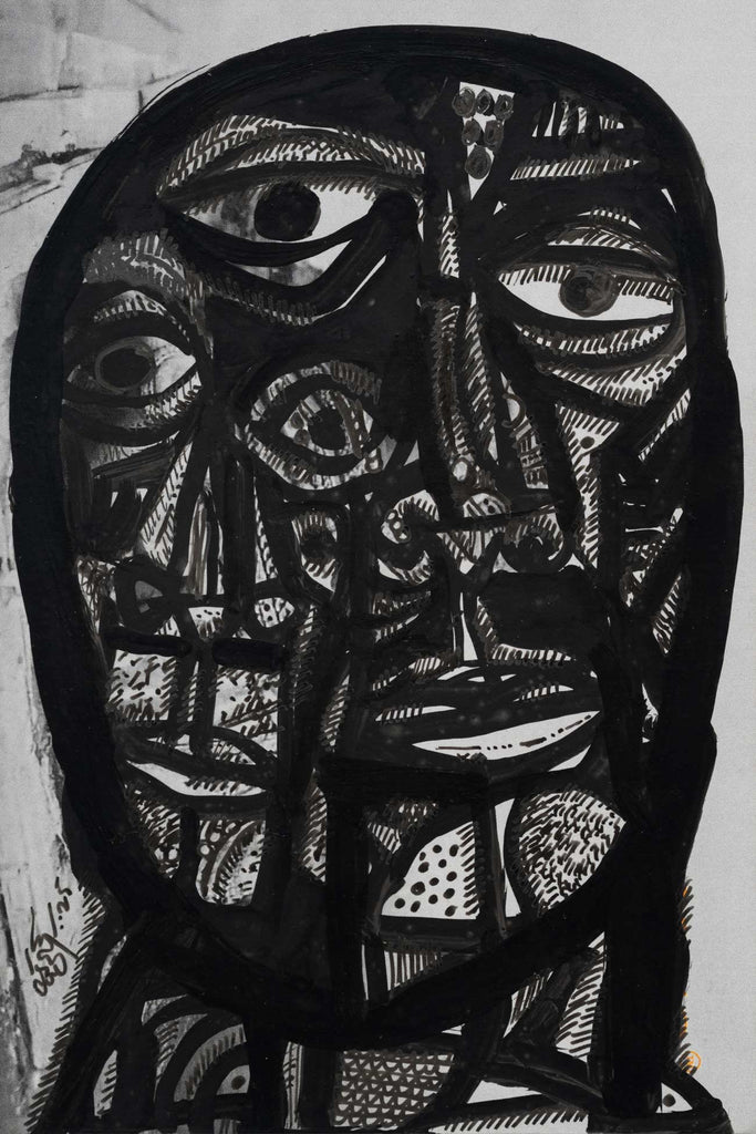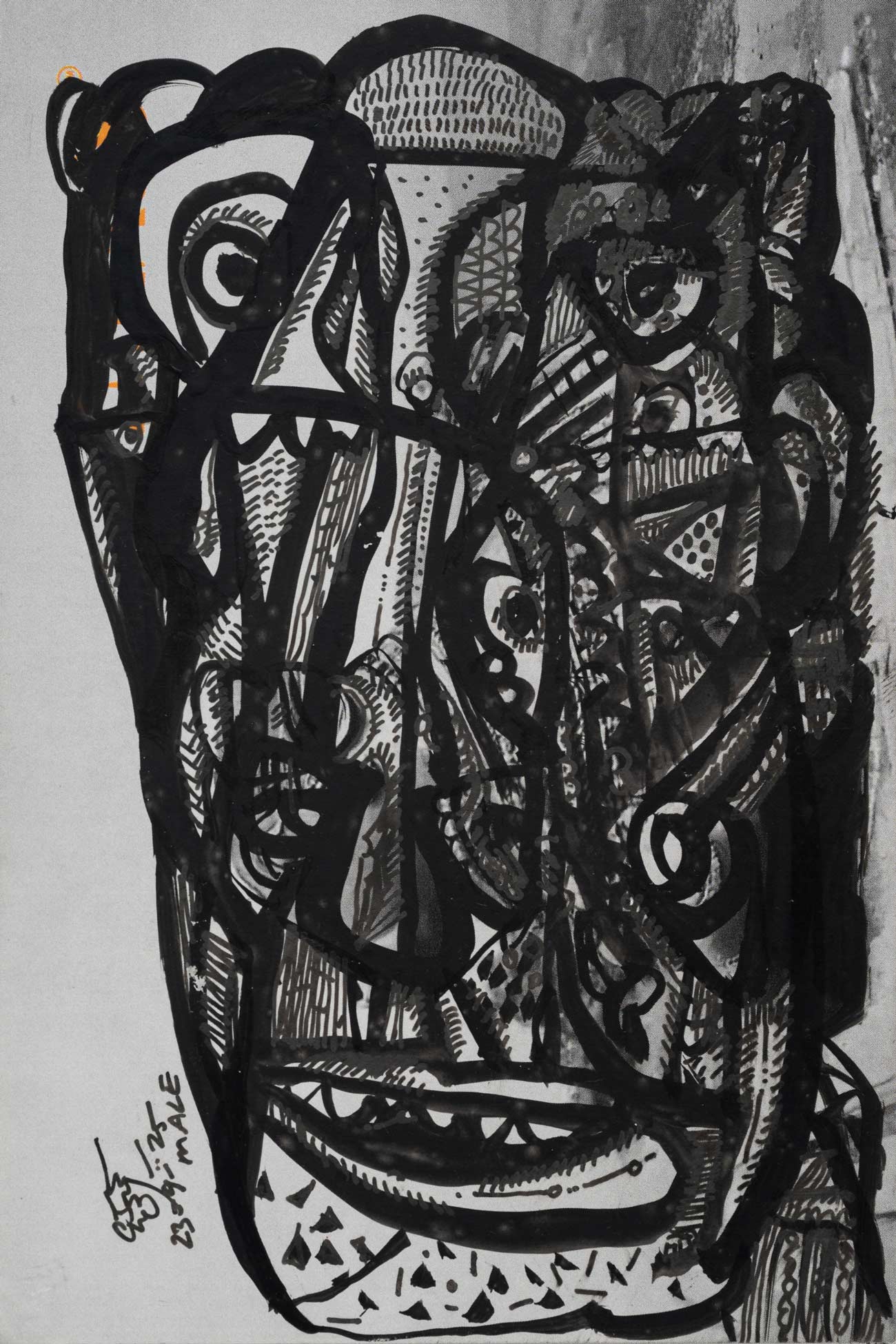 Read MoreThis artwork is part of the 'Remembering Souza' series. Constructing the human figure as a site of conflict, desire, and irreverence, this series is Laxman Aelay’s complementary homage to highly revered modern progressive Indian artist, F.N. Souza (1924-2002). It manifests by confronting the restless energy of the artist in creating an uncompromising modernist depiction of the human figure as never fixed, but always shifting between the sacred and the profane. In doing so, dense layers of strokes cry out to the unfinished and unsettling condition of human life.