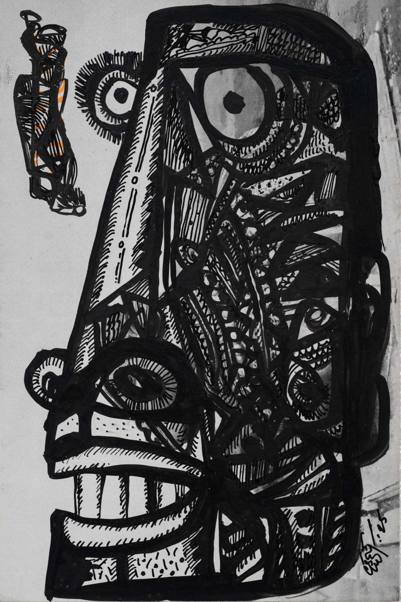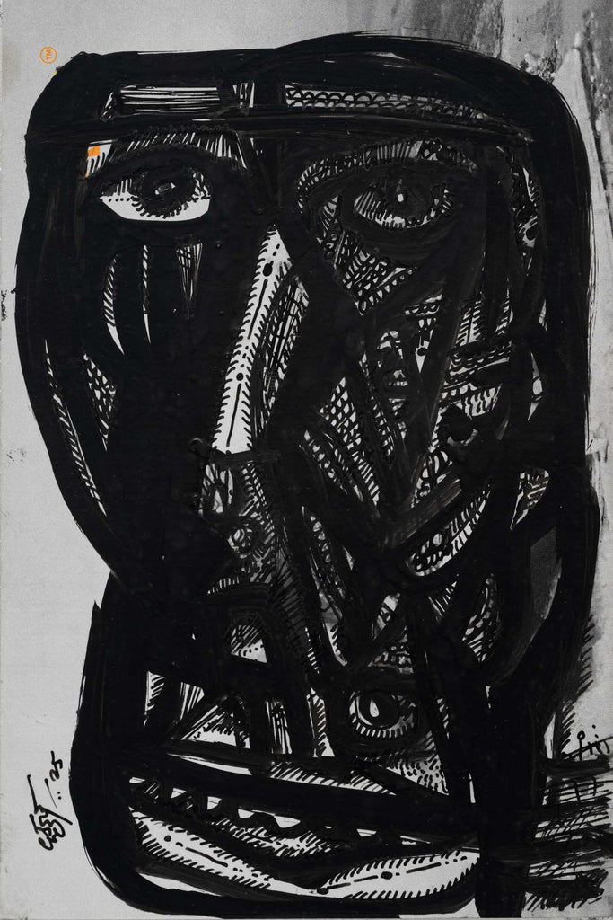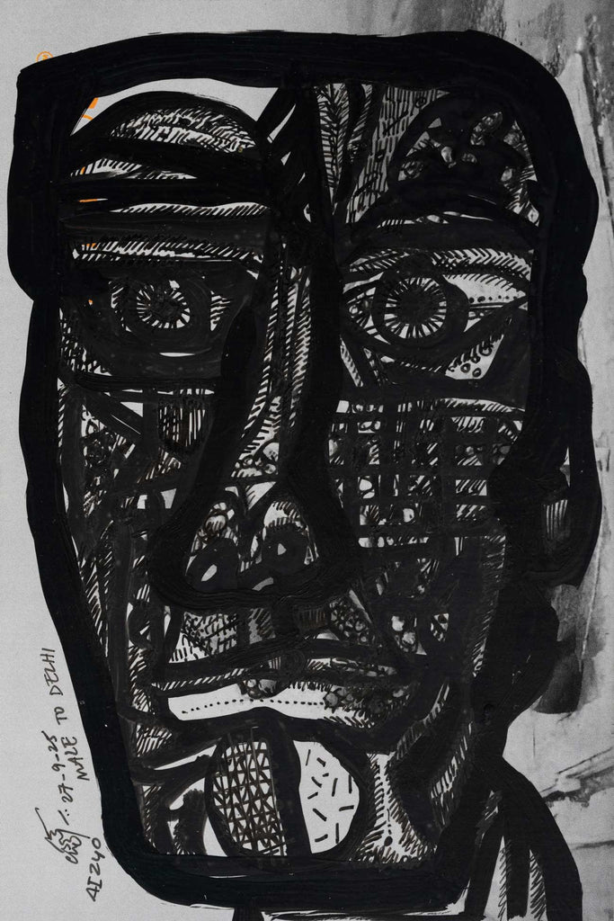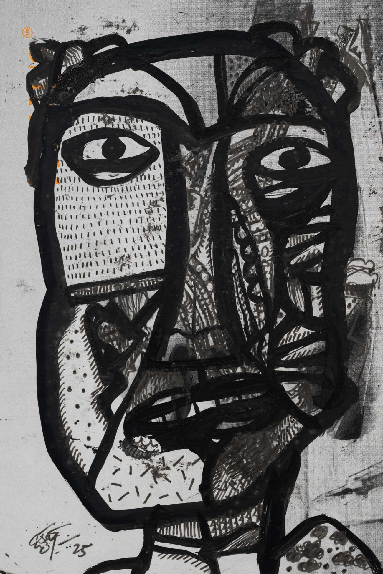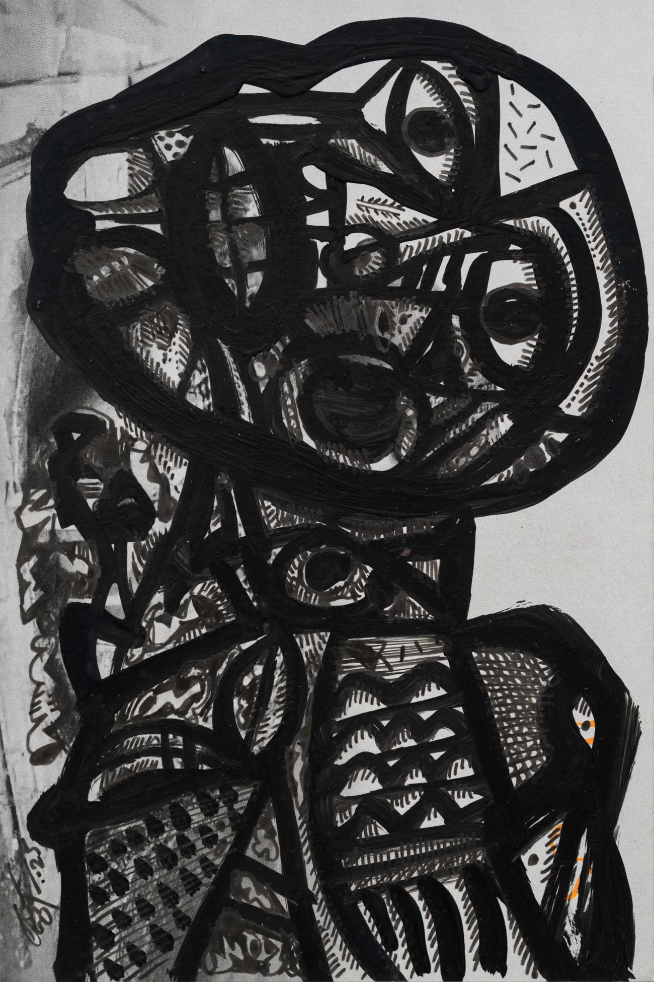 Read MoreThis artwork is part of the 'Remembering Souza' series. Constructing the human figure as a site of conflict, desire, and irreverence, this series is Laxman Aelay’s complementary homage to highly revered modern progressive Indian artist, F.N. Souza (1924-2002). It manifests by confronting the restless energy of the artist in creating an uncompromising modernist depiction of the human figure as never fixed, but always shifting between the sacred and the profane. In doing so, dense layers of strokes cry out to the unfinished and unsettling condition of human life.