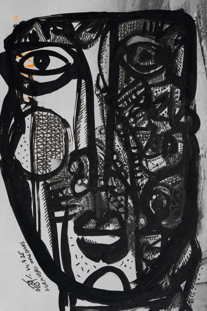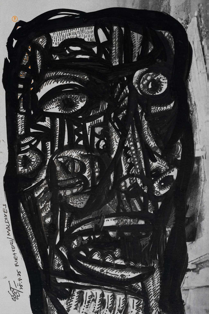 This artwork is part of the 'Remembering Souza' series. Constructing the human figure as a site of conflict, desire, and irreverence, this series is Laxman Aelay’s complementary homage to highly revered modern progressive Indian artist, F.N. Souza (1924-2002). It manifests by confronting the restless energy of the artist in creating an uncompromising modernist depiction of the human figure as never fixed, but always shifting between the sacred and the profane. In doing so, dense layers of strokes cry out to the unfinished and unsettling condition of human life.