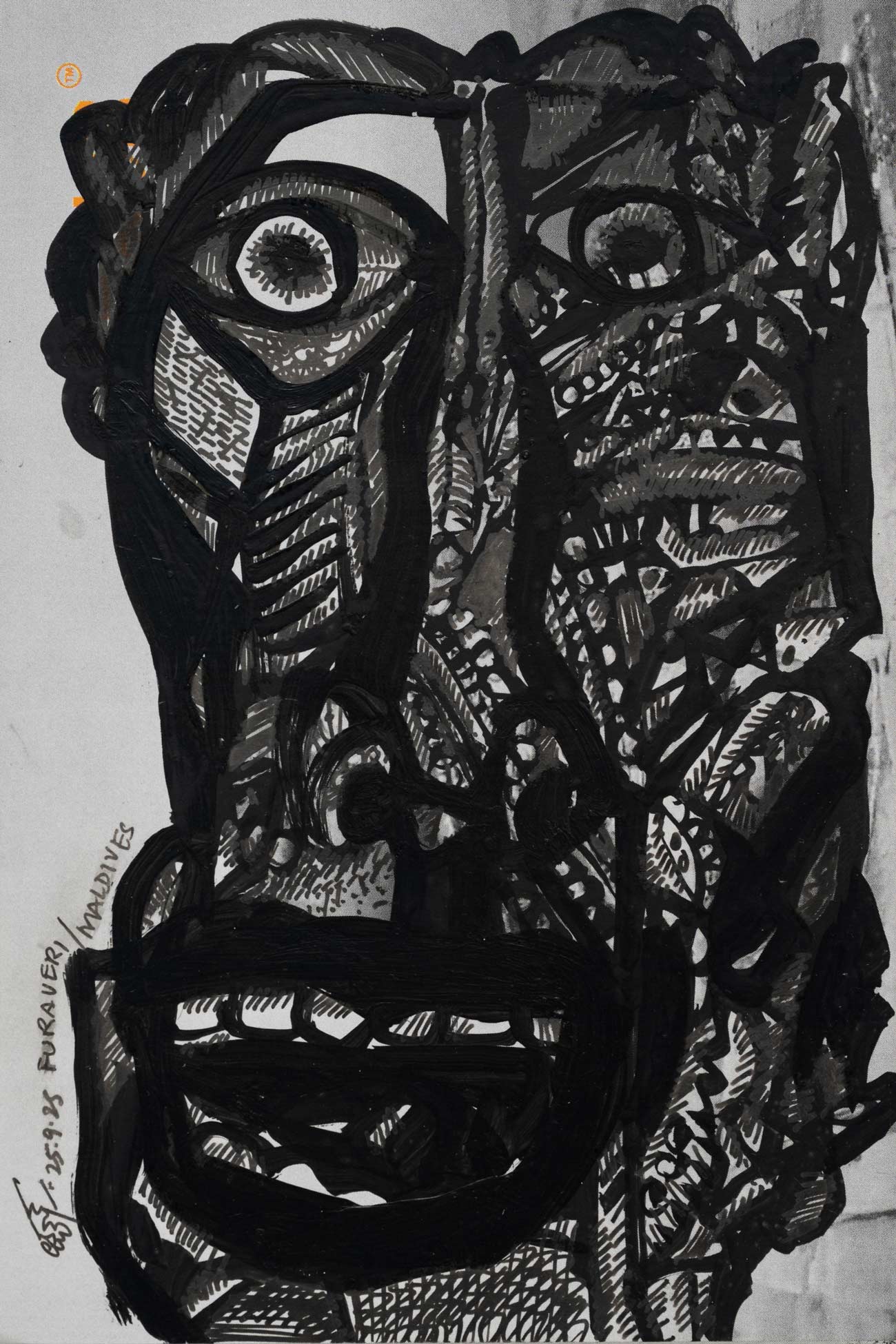 With incredible artistic propensity, Laxman brings forth his intuitive expressions through postcard-sized crosshatched drawings, put together as silent conversations with his favourite artist. The drawings represent the conflict and sufferings of common people in their mundane reality. -